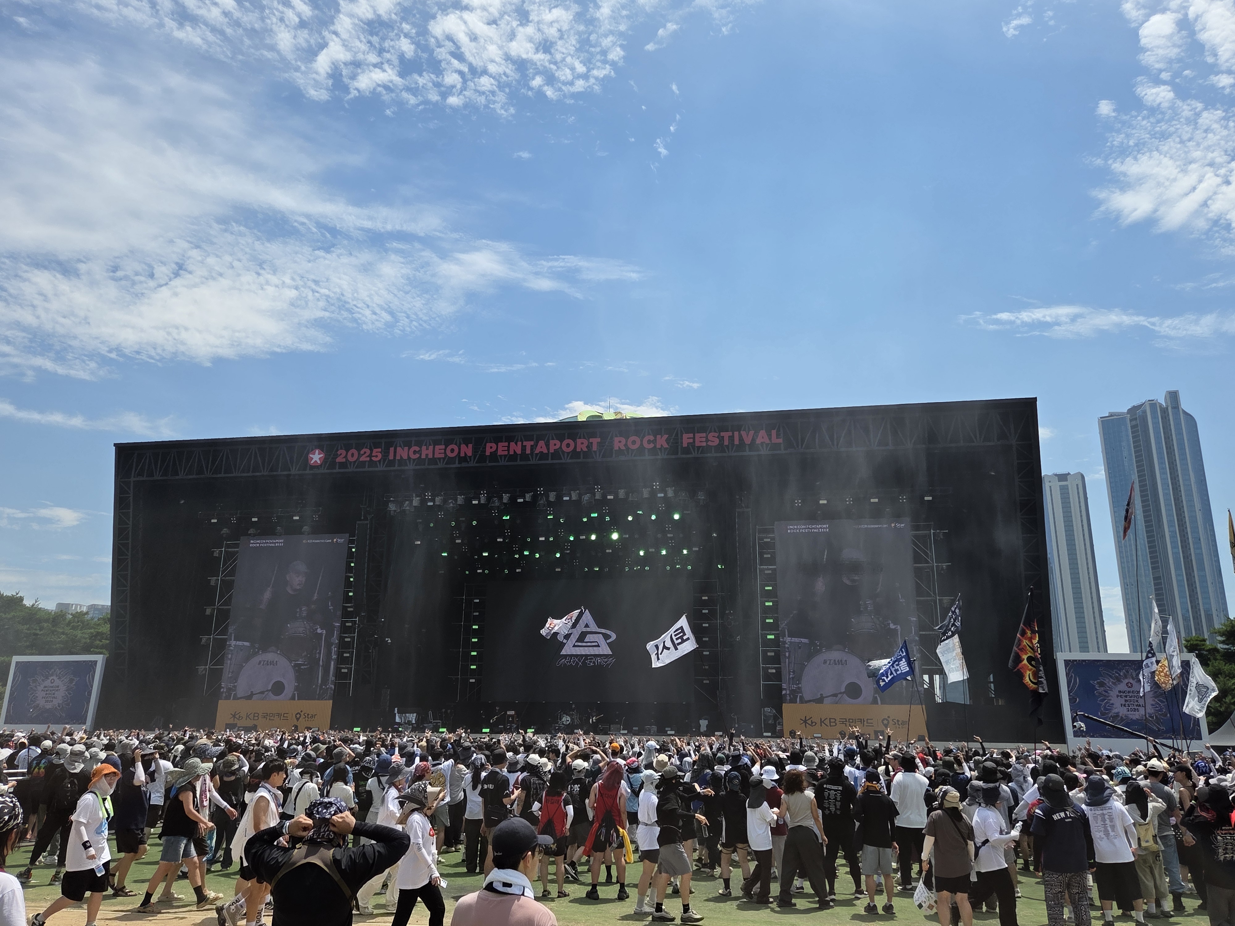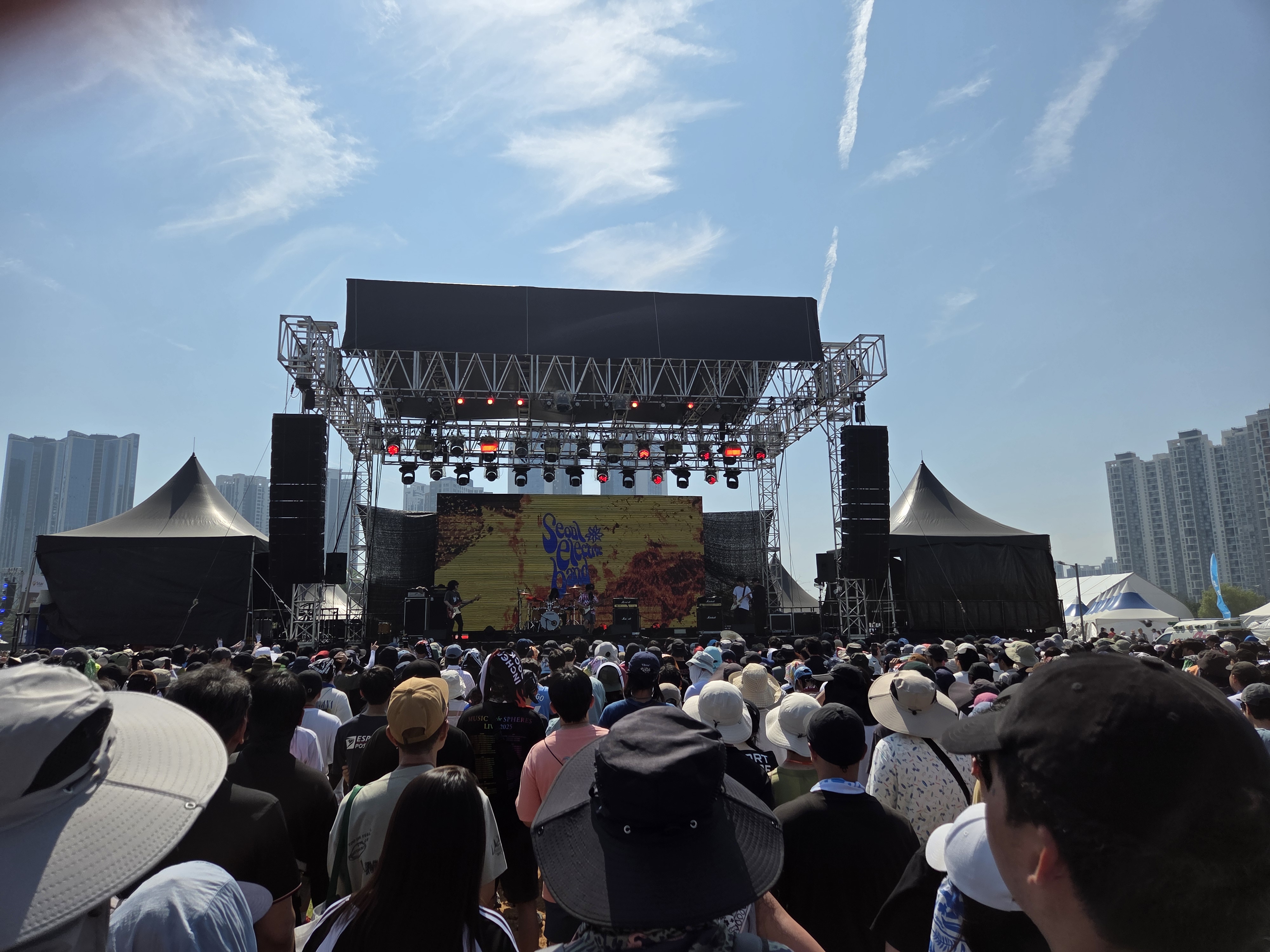 카디 - 처음 접하는 밴드인데 가야금이 연주되어 신기했다. 스카이 어쩌고 라는 노래가 야외 공연장에 매우 잘 어울렸다. 보컬의 시원한 목청이 인상적이었다.