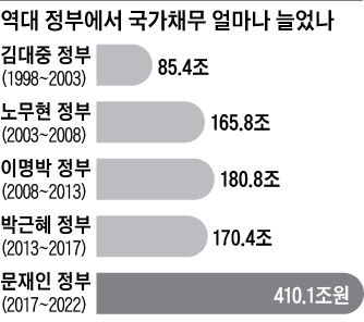 정부 5년 국가 채무 증가액, 이명박·박근혜 9년보다 60兆 많다