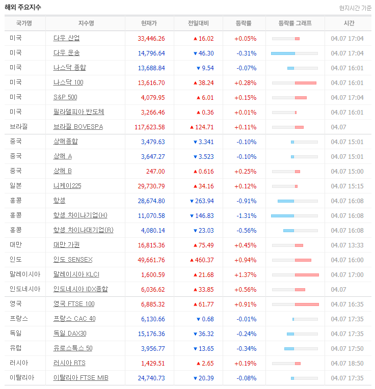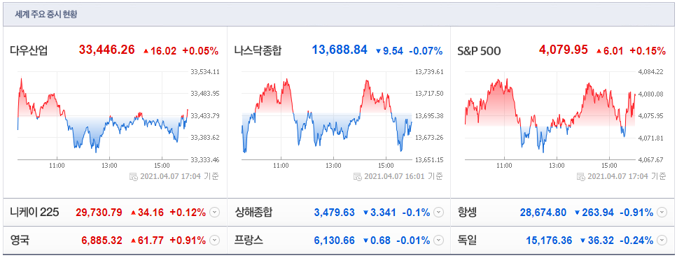 혼조세 속에 다우지수는 계속 상승하고 있네요.