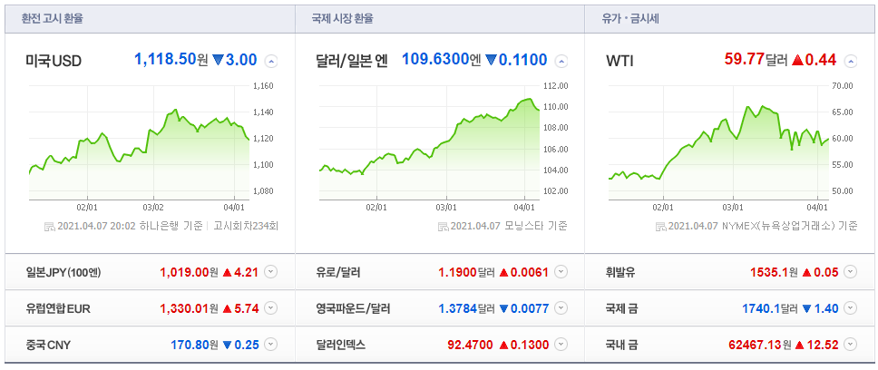 서부 텍사스유는 AZ백신에 대한 안전성 우려가 지속되고, 원유 재고가 예상보다 크게 줄었다는 소식에 소폭 상승하였네요.