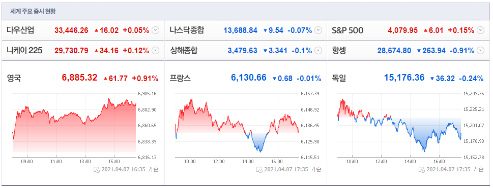 영국의 예방접종 확대, 파운드의 약세 등으로 증시에는 도움이 되었다고 합니다.