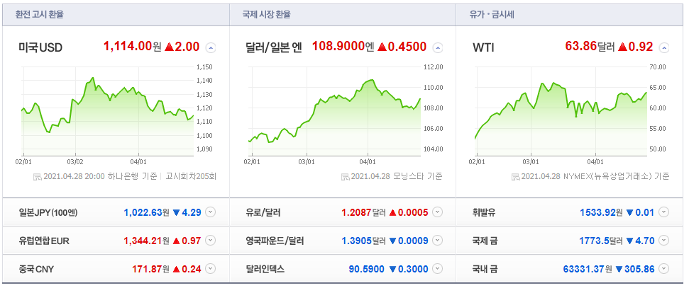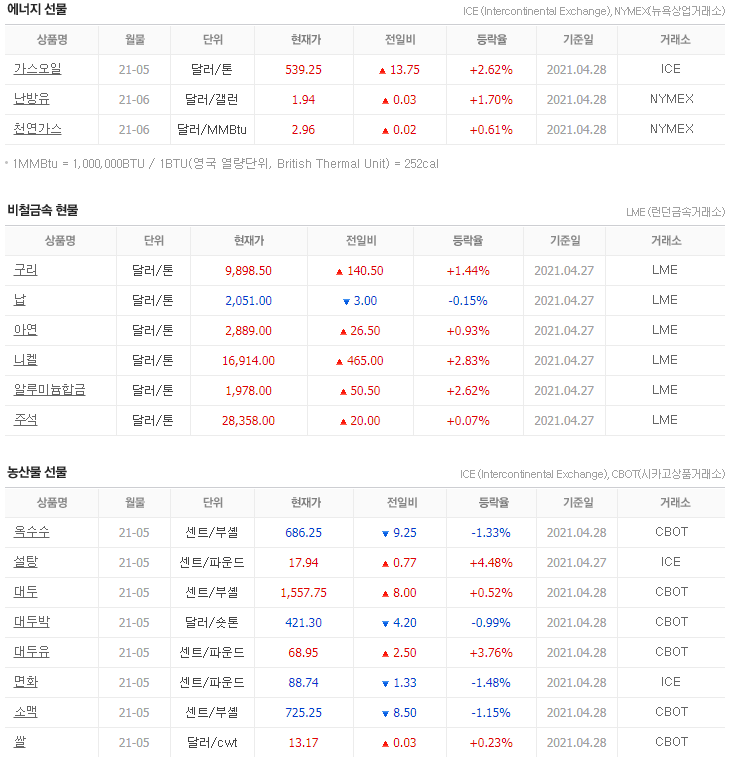 원유가격은 기대수요 증가로 인해 상승하여 최근 최고가를 세웠네요.