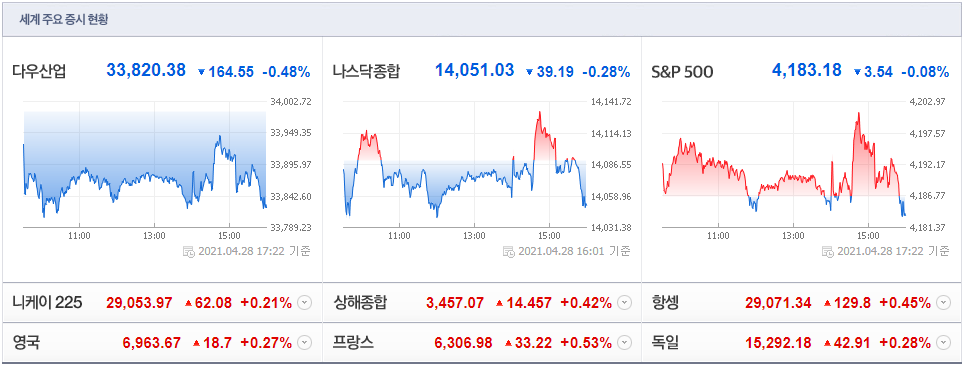 미증시는 미 연준이 금리, 부양책 유지라는 카드를 결정했음에도 시장 예상치에 부합한 수준이었는지 보합에서 혼조세였습니다.