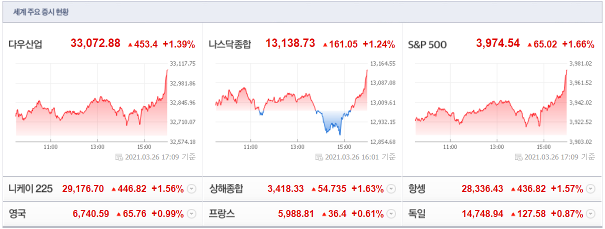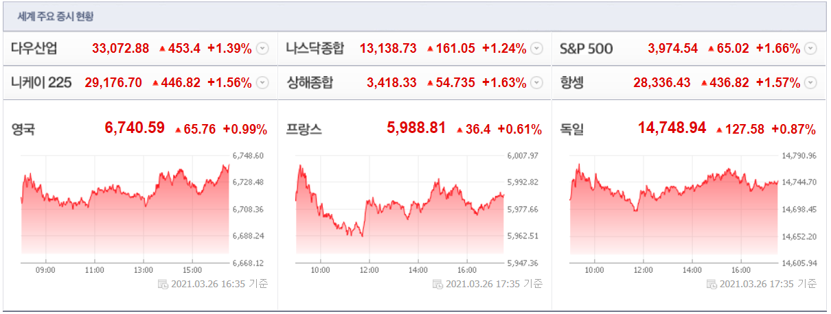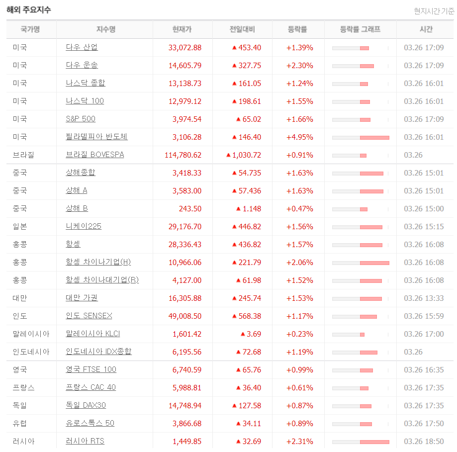 모처럼 모든 증시가 상승했군요.... 수에즈 운하사태는 장기화되려나요??