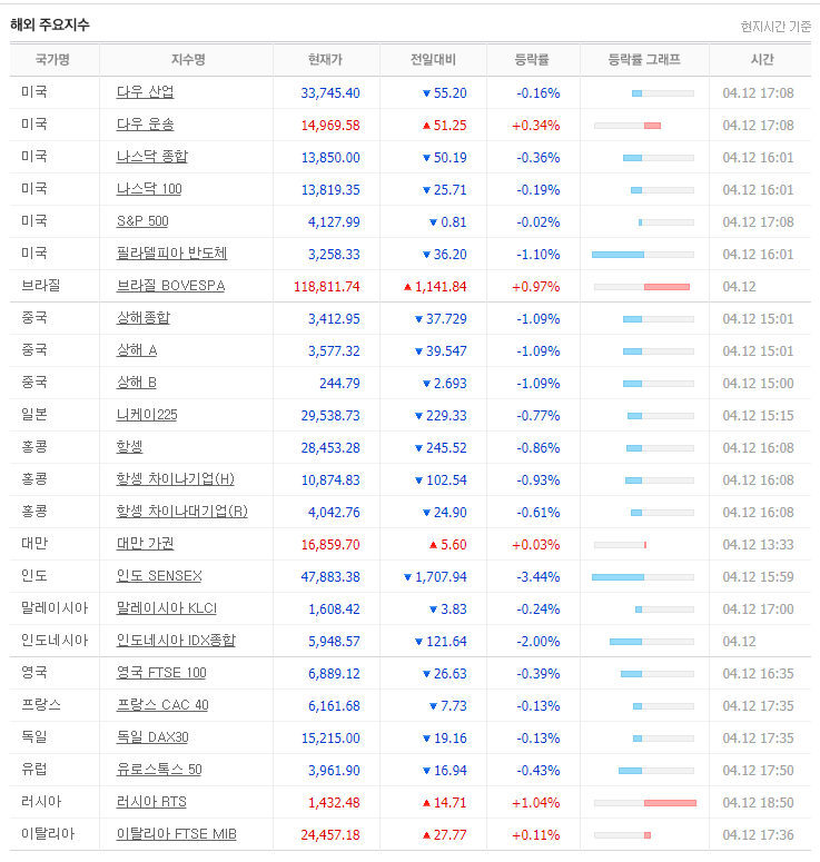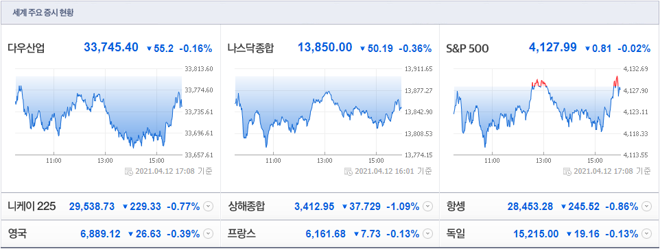 유럽과 미국 증시는 기업들의 실적 보고 시작과 물가상승률 발표를 앞두고 관망하고 있다고 언론 보도하였는데요.