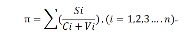 여기서 Ci는 불변자본, Vi는 가변자본, Si는 잉여가치, π 는 이윤율을 뜻한다. 여기에 각 항을 가변자본인 Vi로 나눠보면