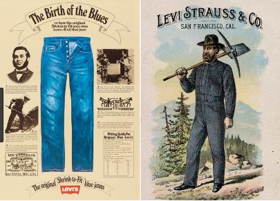 1848년 1월 24일, 미국 캘리포니아에서 사금이 발견됐습니다. 그러자 이듬해 약 10만 명이 미국 서부 해안으로 몰려들었고. 이때 돈을 번 사람들은 직접 금을 캔 광부들이 아니라 땅을 파는 데 필요한 튼튼한 작업복과 작업공구들을 판매한 사람들이었답니다. 레비 스트라우스는 ‘찢어지면 무조건 환불해 준다’라는 구호 아래 광부들에게 청바지를 선보였는데 날개 돋친 듯이 팔려나갔는데. 이것이 오늘날 청바지의 대명사가 된 리바이스의 기원이됬습니다.