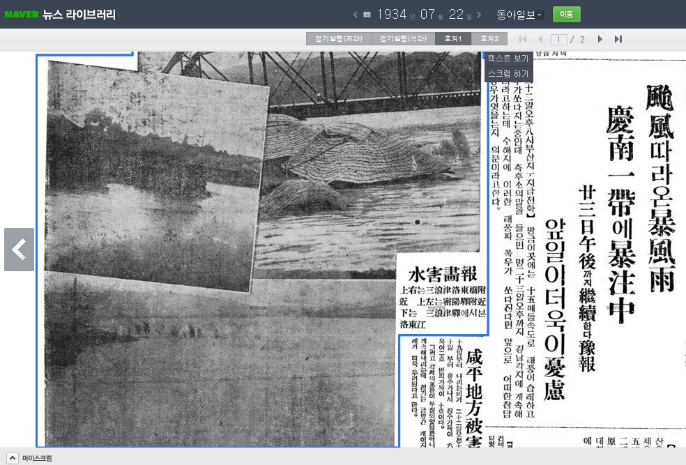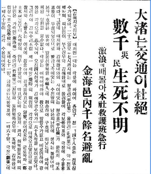 대홍수가 발생하자 동아일보는 연일 속보로서 이 사건을 전달한 것 같습니다.