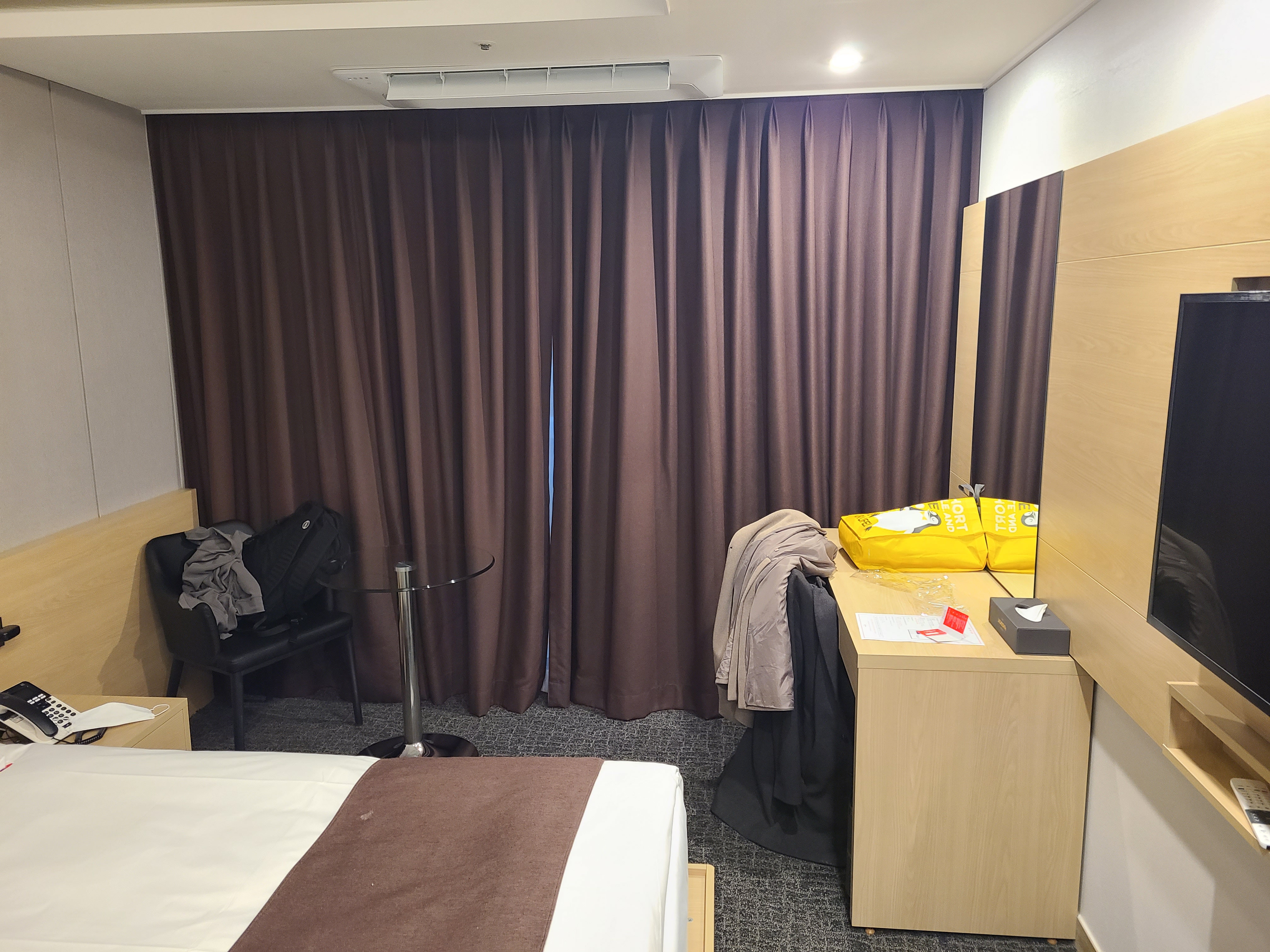 TV, 커피 포트 등 어느 호텔(모텔)에서나