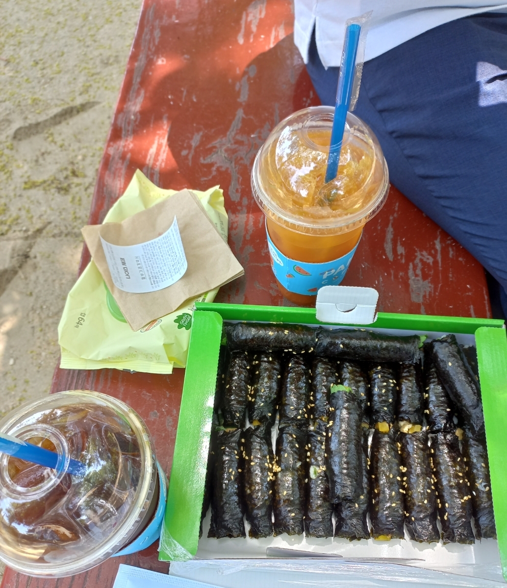 꼬마김밥😋sisterjang (68)in #kr • 4 years ago 김밥과 커피 포장 공원가서 한시간 동안 밥 먹고 멍때리고 음악듣고 힐링하고 ...👍 #ko #today #kimbab #coffee #pack #lunch #healing