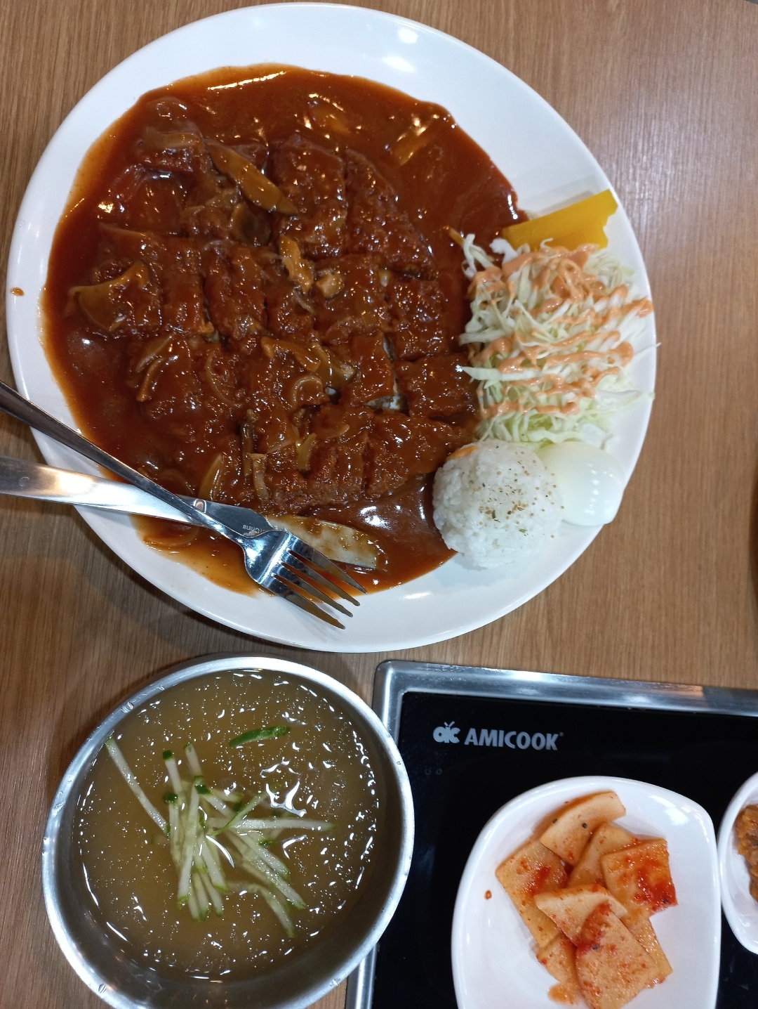 Lunchsisterjang (68)in #kr • 3 years ago 돈까스와 스프 대신 시원한 냉면육수 #ko #today #porkcutlet #soup #cool #lunch