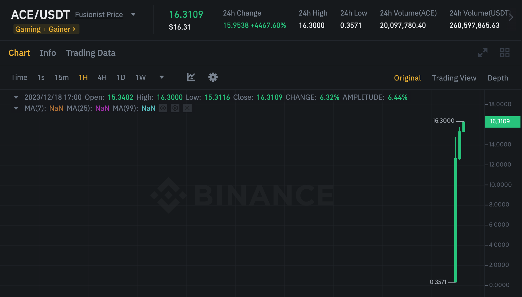 바이낸스의 런치풀과 OKX 의 점프스타트를 통해 동시 리스팅이 진행된 ACE 가 대략 2시간 전 쯤 상장이 됐는데요.