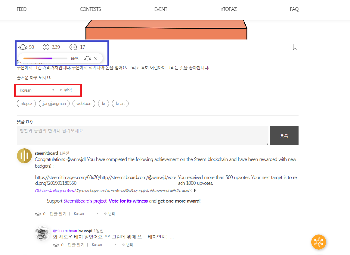 ntopaz 요즘 @joeypark 님께서 엄청난 이벤트와 홍보로 핫 해지고 있는 댑 입니다 해외에선 이미 핫해진거로 파악이 됩니다 그럼 nTOPAZ 는 무슨 포스팅을 해야 하냐 스팀잇에 그림을 그리시거나 웹툰을 그리시는분 풍경사진을 찍으시는 분들께 강추 강추 입니다