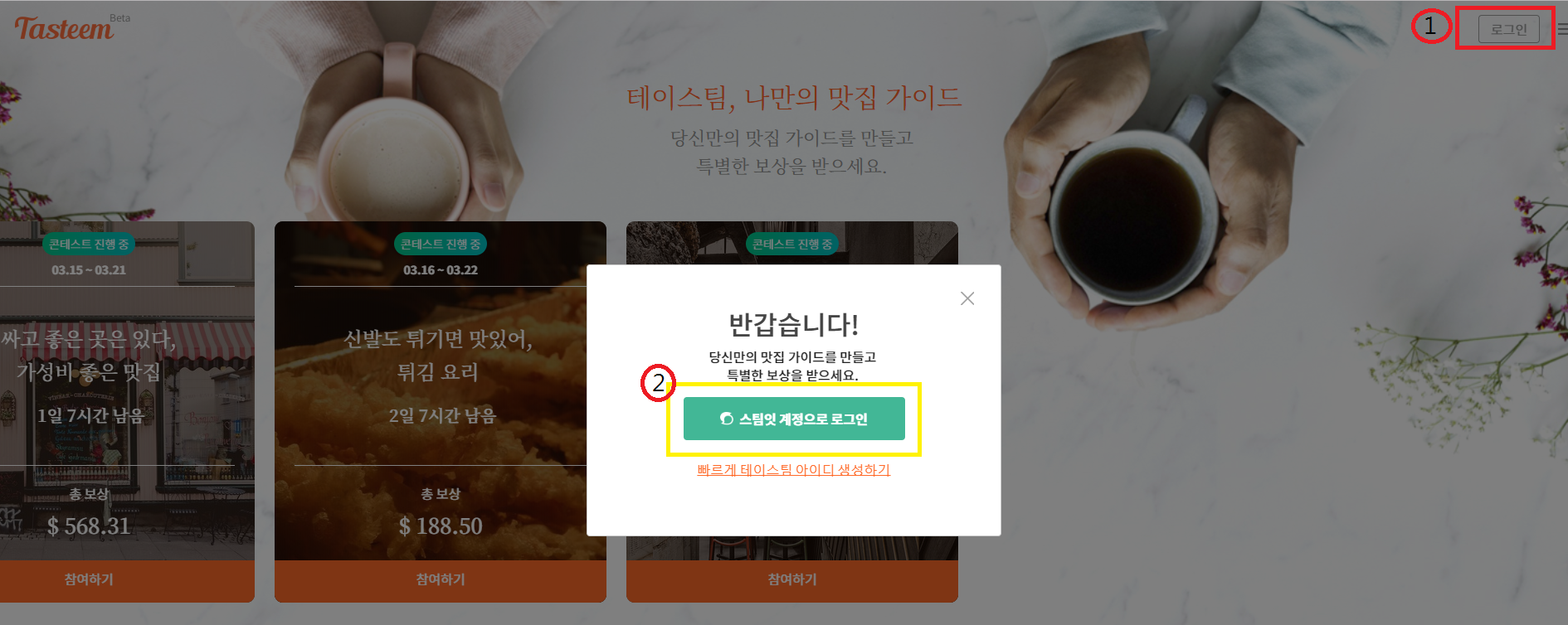 2.https://kr.tasteem.io/ 테이스팀