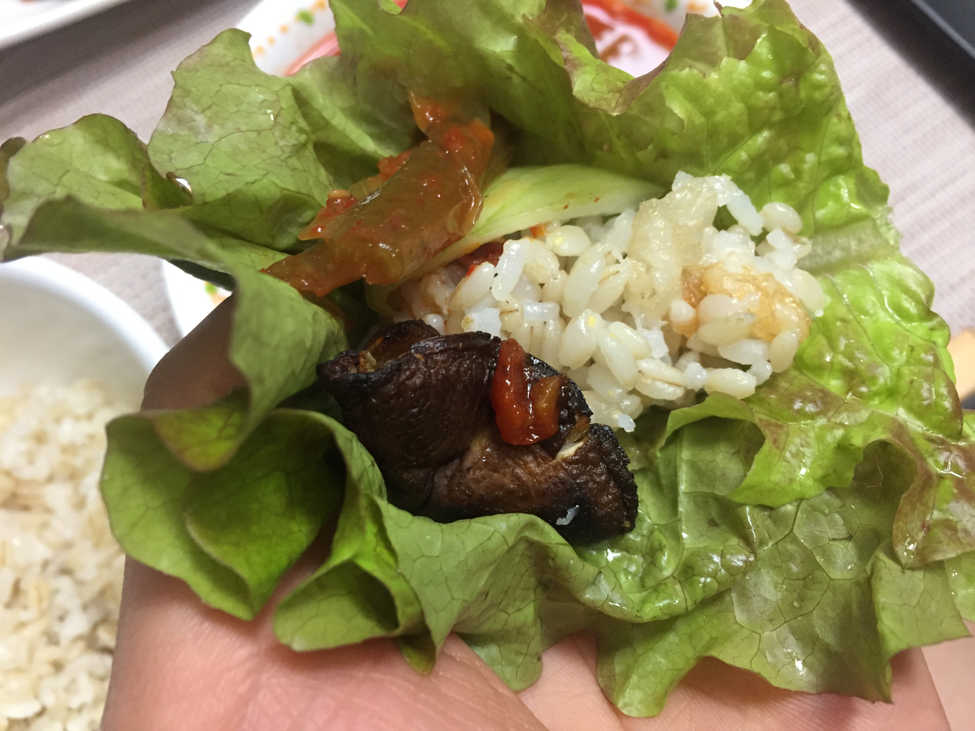 어제는 싱싱한 상추에 고기 대신 버섯으로.