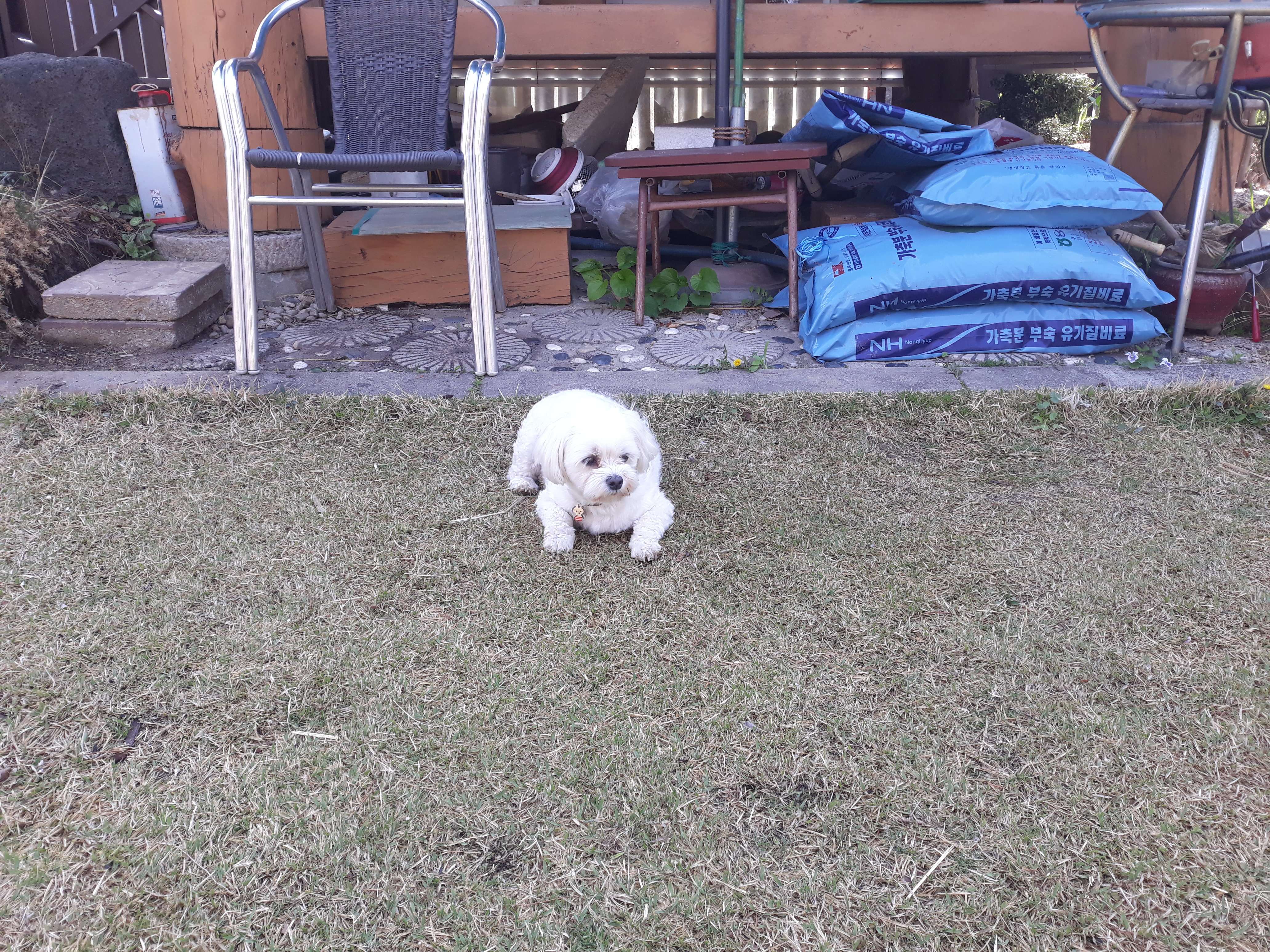 코코는 요새 마당에 나가 노는데 맛을 들였어요.툭하면 밖에 내보내달라고 짖습니다.마당을 부지런히 돌아다니다가,사진처럼 잠시 엎드려서 쉴때도 있네요.솔이는 고양이라 마당에 내놓기가 조심스러운데요..목줄을 매거나 유모차에 태워서 내보내고 있어요.코코와는 달리 소심하고 겁많은 성격이라,마당에서도 잘 못 놀고 가만히 있을때가 많네요.