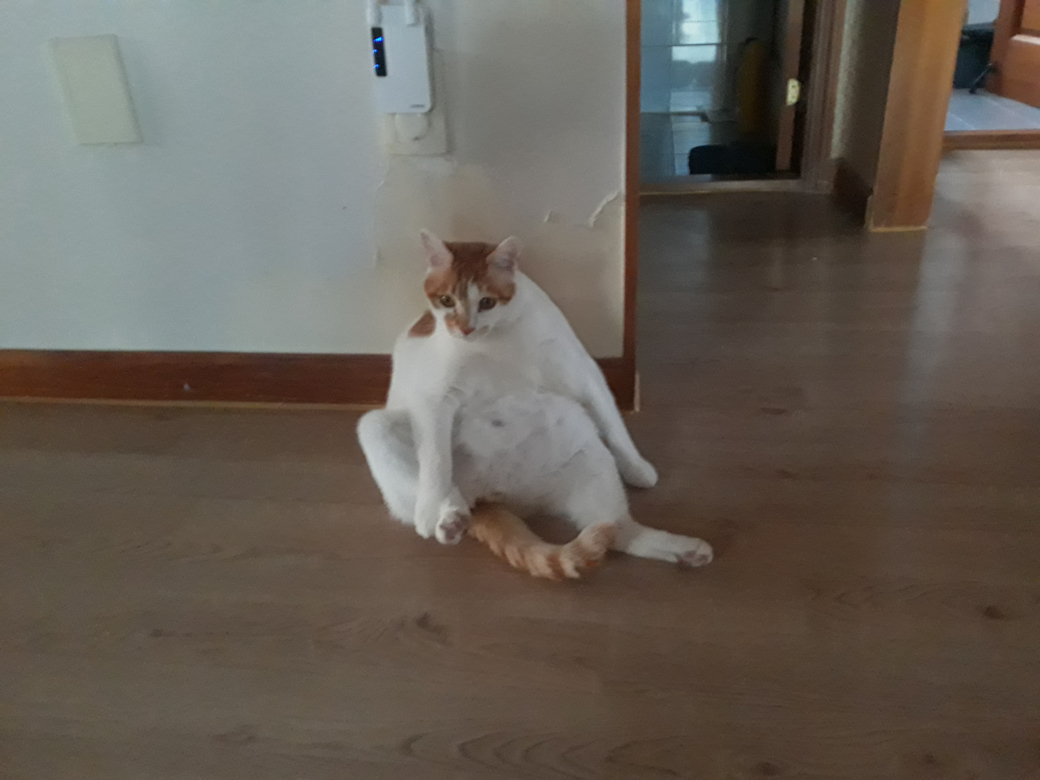 솔이는 항상 1층 컨센트아래에서 양반다리를 하고 앉아있어요.저렇게 앉은후에 가만히 있거나,그루밍을 합니다.이때 갑자기 코코가 나타나 먼저 시비를 걸고,솔이를 물어뜯으면 서 서로 싸움이 시작되기도 해요.요즘은 그래도 예전에 비해선 별로 안 싸우네요..