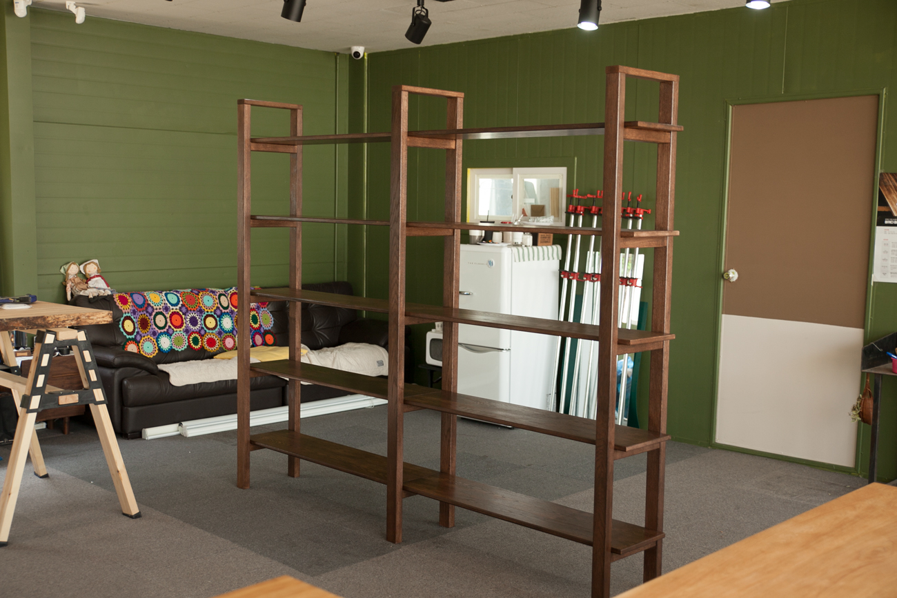 Walnut stain on red oak, w2400 x d390 x h2000