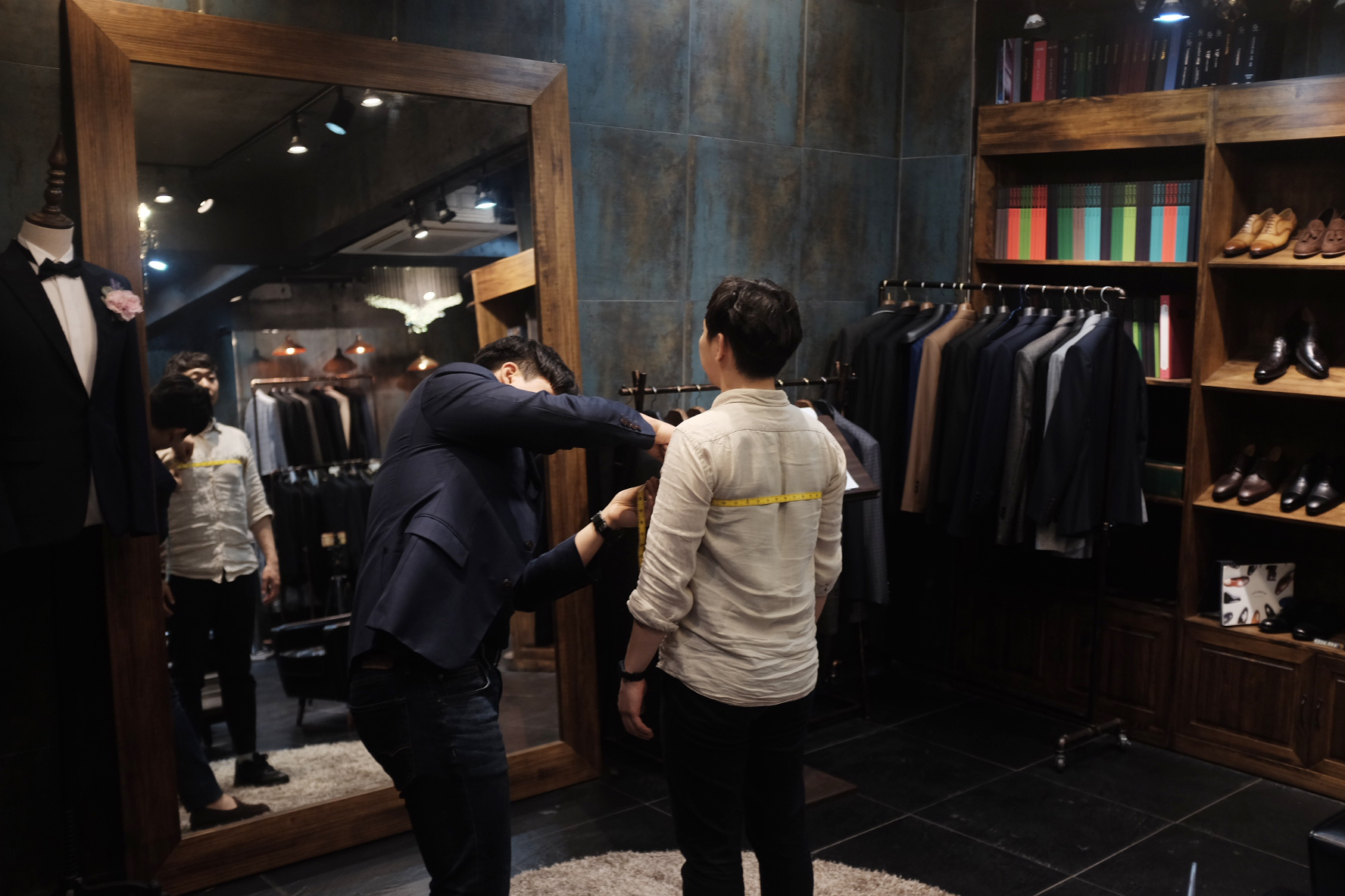 원래는 대구에서 지인이 하던 사업이었어요. 나중에 정장이라는 아이템이 기억에 많이 남아서 서울로 상경한 뒤 그쪽으로 일을 시작하게 되었습니다. 백지 상태에서 시작하려고 하니 처음에는 어려움이 많았어요. 게다가 사투리까지 구수하게 쓰니 지원하는 곳마다 거절을 당했죠. 우연히 지원한 곳의 사장님이 사투리를 쓰셨는데, 그게 인연이 되어 시작하게 되었어요. 나중에는 도매하던 분과도 연이 닿아 턱시도라는 분야까지 넓히게 되었죠.