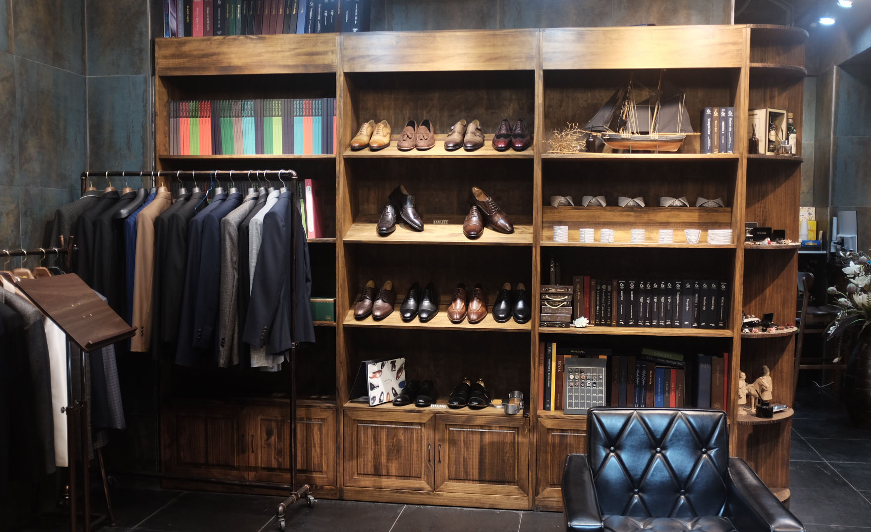 공간의 컨셉은 엔틱입니다. 엔틱이라는 분위기에서 고전적인 멋스러움이 나오는것 같아요. 한 층 더 품격있는 분위기로 정장이 가진 매력을 끌어올린다고 생각합니다.