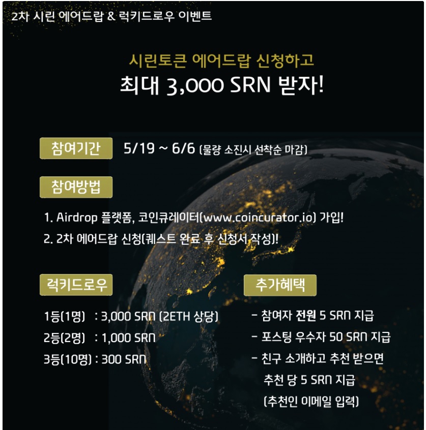 2차 시린토큰(SRN)에어드랍 : 업비트 거래 코인...GO!! GO!!