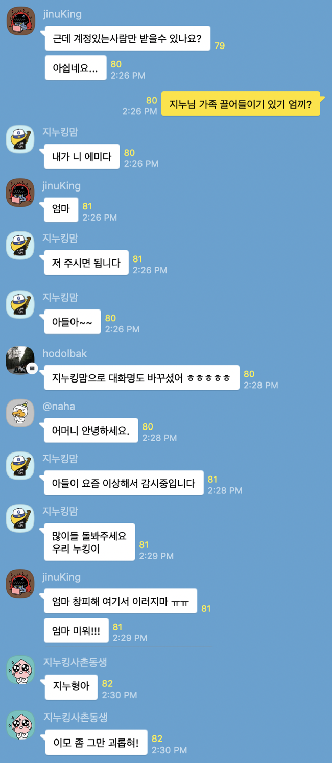그방 한바탕 소란이었습니다 지누님이랑 엄마때문에... ㅋ
