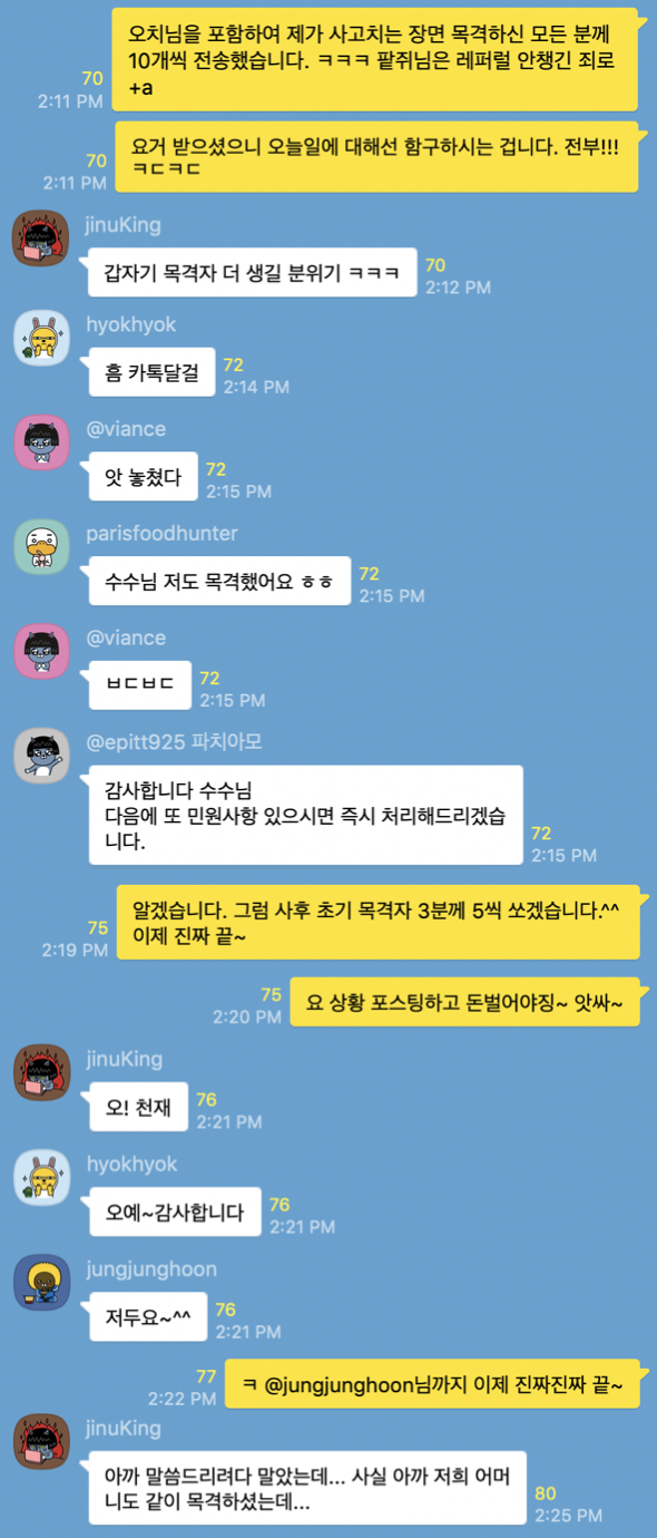 그 과정에서 참전하신 분들이 너무 웃겨서 톡을 편집해서 올립니다.^^