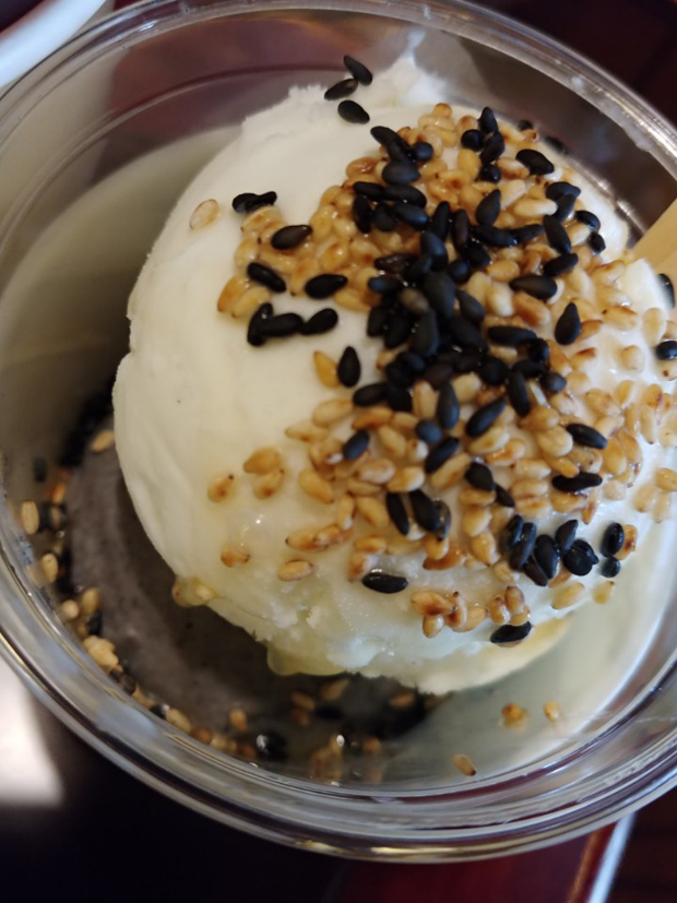 위에 뿌려진 참깨 + 시럽처럼 뿌려진 참기름과 아이스크림의 조화 ㅎㅎ