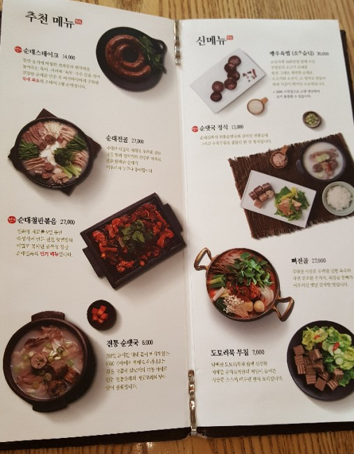 순대실록의 메뉴 입니다. 순대볶음이나 전골등의 요리도 술안주로 적당합니다.