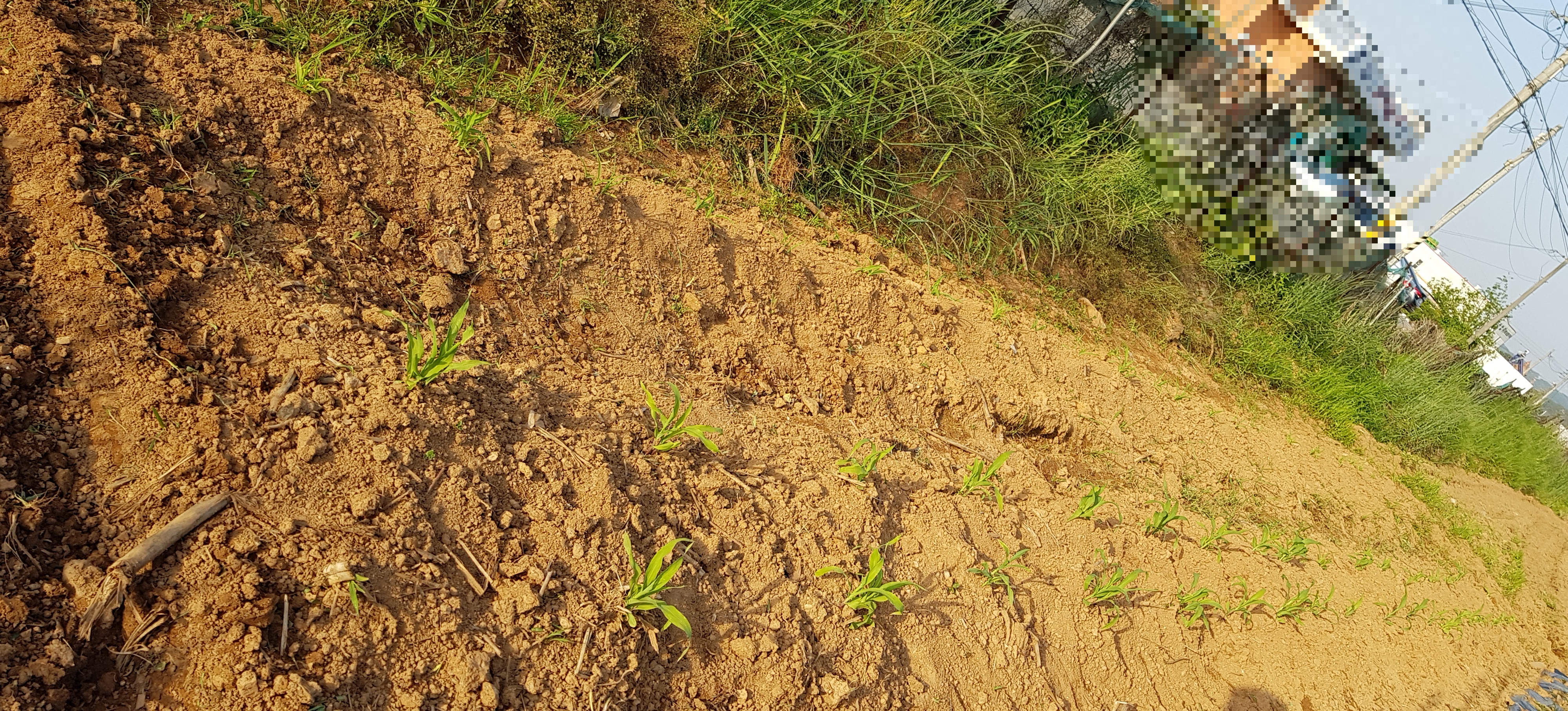 그래서 5월 초에 농협에 가서 씨앗을 사서 집담벼락 밑에 땅을 이뿌게 해서 옥수수 씨를 심었죠.