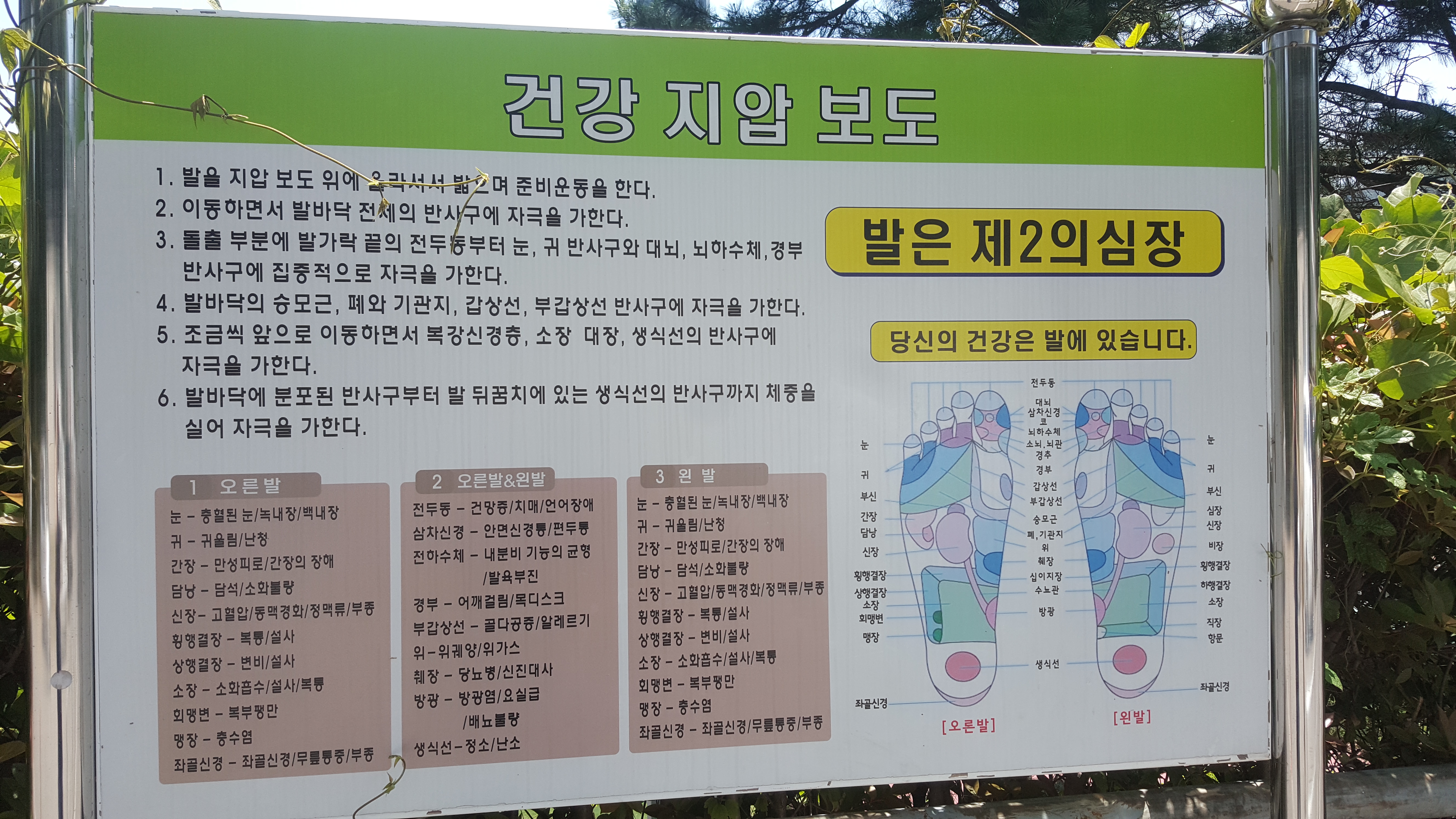 큰아들이랑 청소년 수련관에 공룡공연한다고 갔다가 주차 할 곳이 없어 한참위쪽 운동장 주차장에 주차하고 내려오는길에 건강 지압 보도가 있네요.