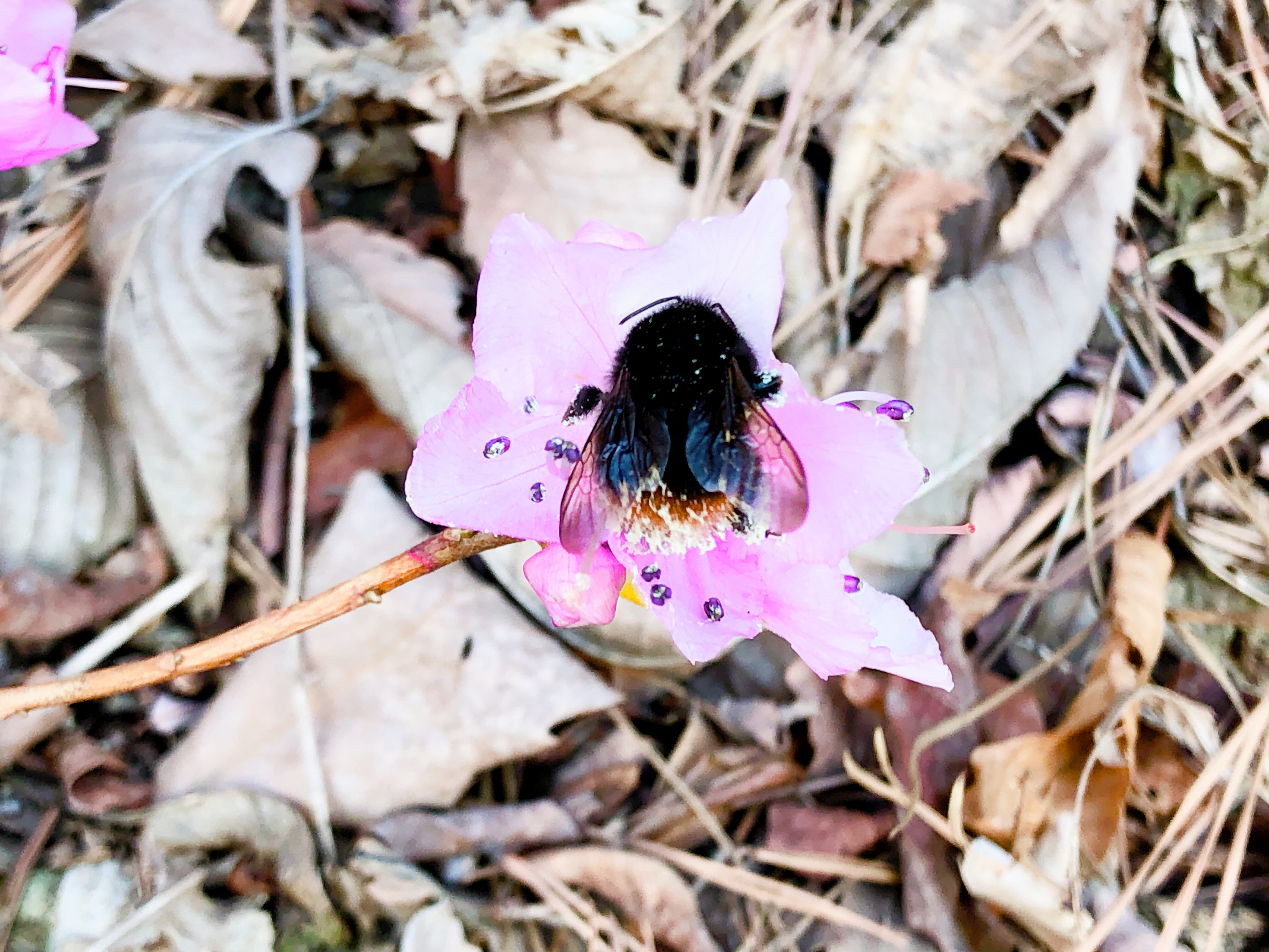 빨리도 나왔네요. 호박벌이 진달래 꽃 사이에서 여란하게 화분과 꿀을 열심히 모으고 있네요.