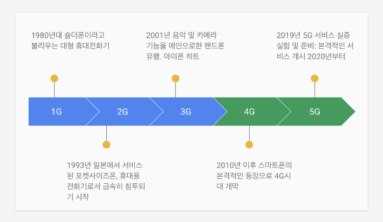 일본에서 1G에서부터 5G까지의 주요흐름