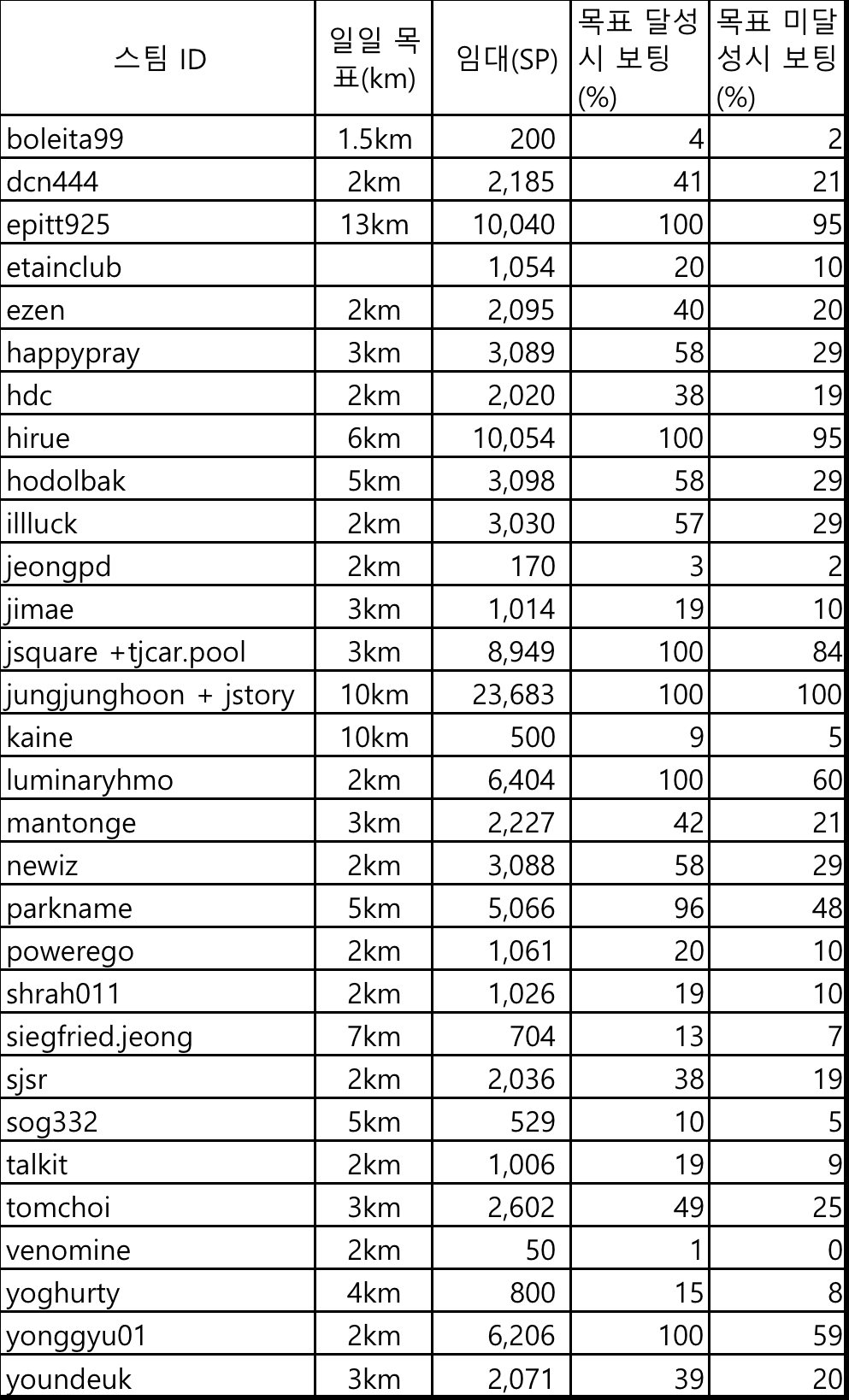 - 현재는 풀보팅 기준이 4500SP이지만 임대량 및 목표 달성 비율 등에 따라 조정 예정.