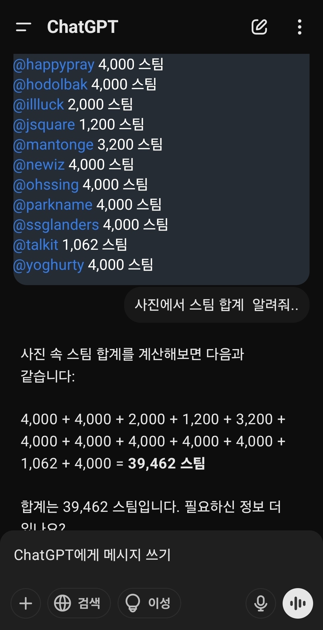 형님 chat got 계산이 틀렸네요. 4천이 한번 더 더해졌습니다 ㅋ