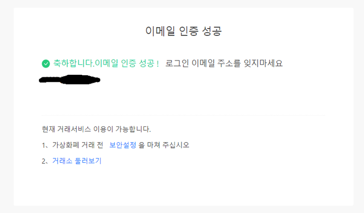 확인후 인증을 마치십시오. 인증완료후 가상화폐 거래가 가능합니다.
