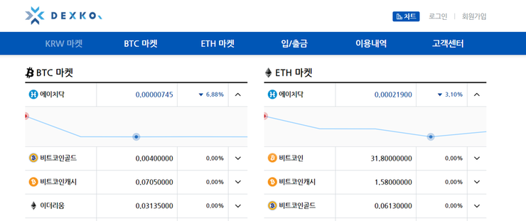 덱스코의 거래량이 적은 이유 중 하나가 아닐까 합니다.