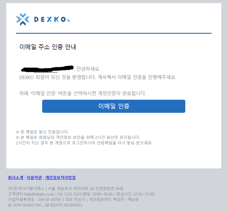 덱스코에 가입한 것을 환영한다는 메일입니다.