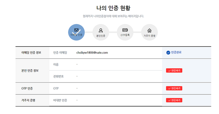 으로 구성되어져 있으며, 다 기입되면 이메일 인증으로 갑니다.
