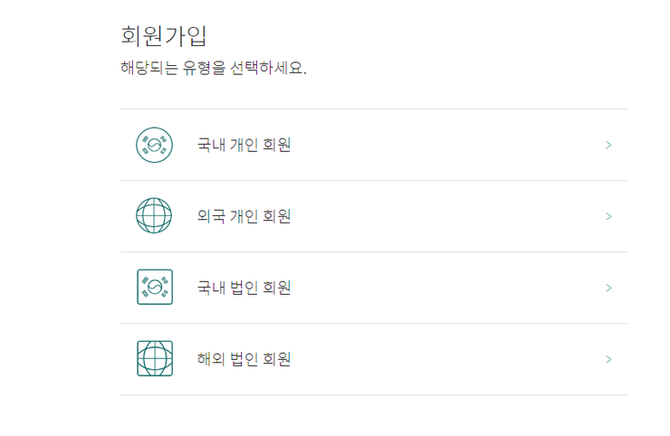 국내 개인 회원 / 외국 개인 회원 / 국내 법인 회원 / 해외 법인 회원