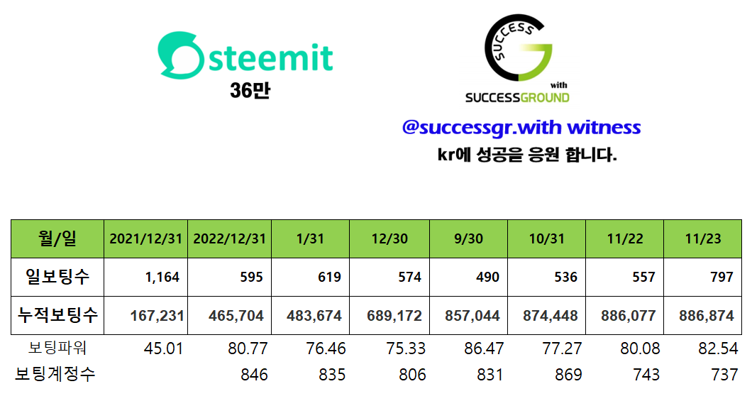 - 일 1회 krsuccess 태그를 사용하신 분들께 보팅합니다.