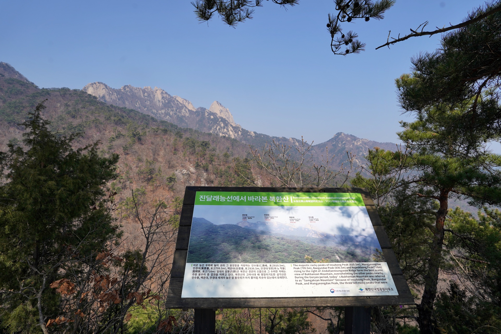 마음 같아서는 시야를 가로막는 나무들을 정리해 조망을 확보하고 싶은 충동이 들었지만, 국립공원의 자생 나무를 함부로 훼손할 수는 없는 법이다. 다만, 보존 가치가 높은 소나무 같은 품종은 몰라도, 시야를 완전히 가려버리는 잡목들은 어느 정도 정리가 필요하지 않을까 하는 아쉬움이 들었다.