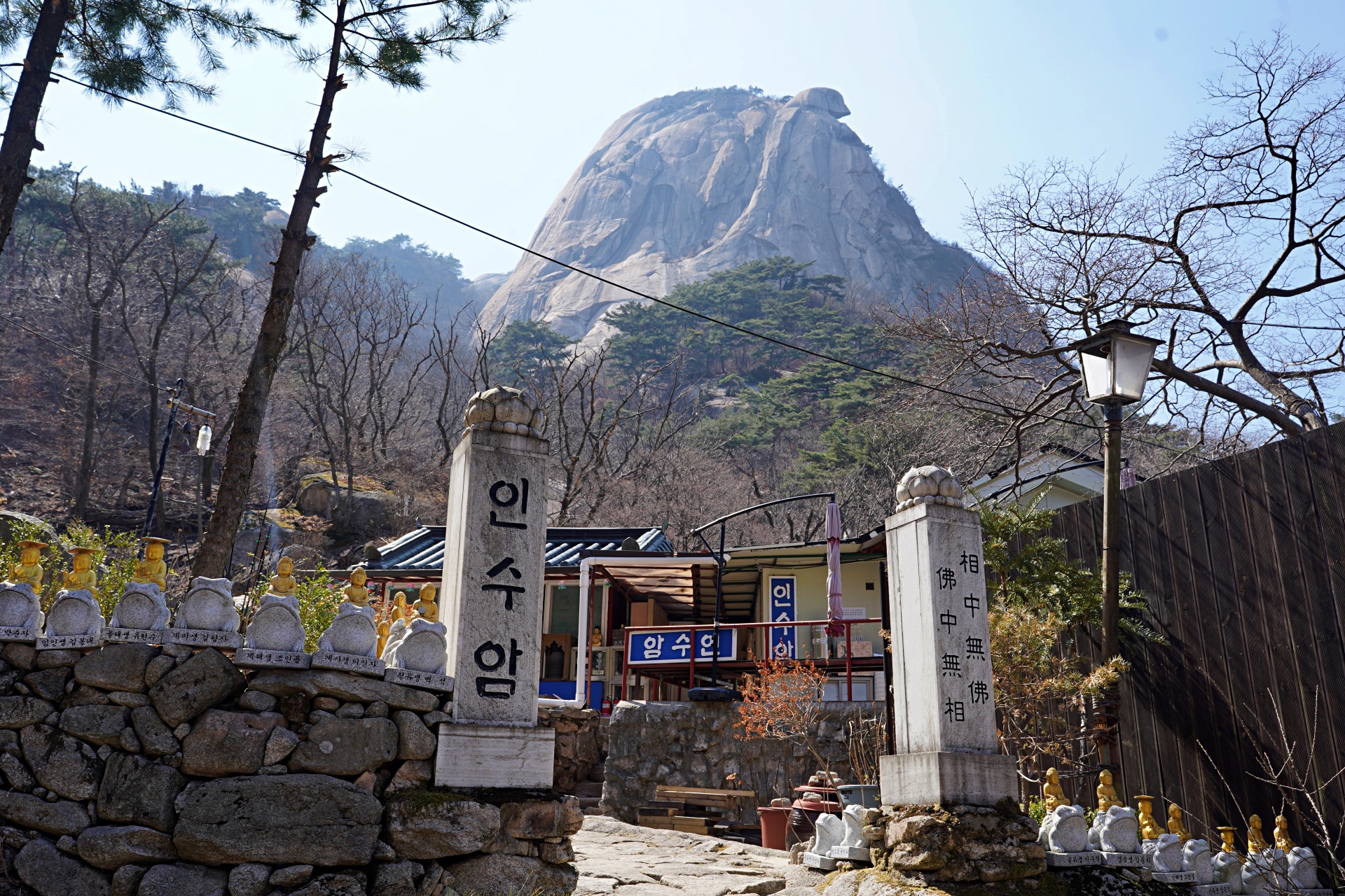 인수봉을 배경으로 자리 잡은 인수암은 인수봉을 오르다 사고를 당한 클라이머들을 추모하기 위해 세워졌다고 한다. 이곳 마당에서 고개를 들면 거대한 인수봉 암벽이 병풍처럼 펼쳐져 있어, 그 웅장함을 가장 가까이서 느낄 수 있다.