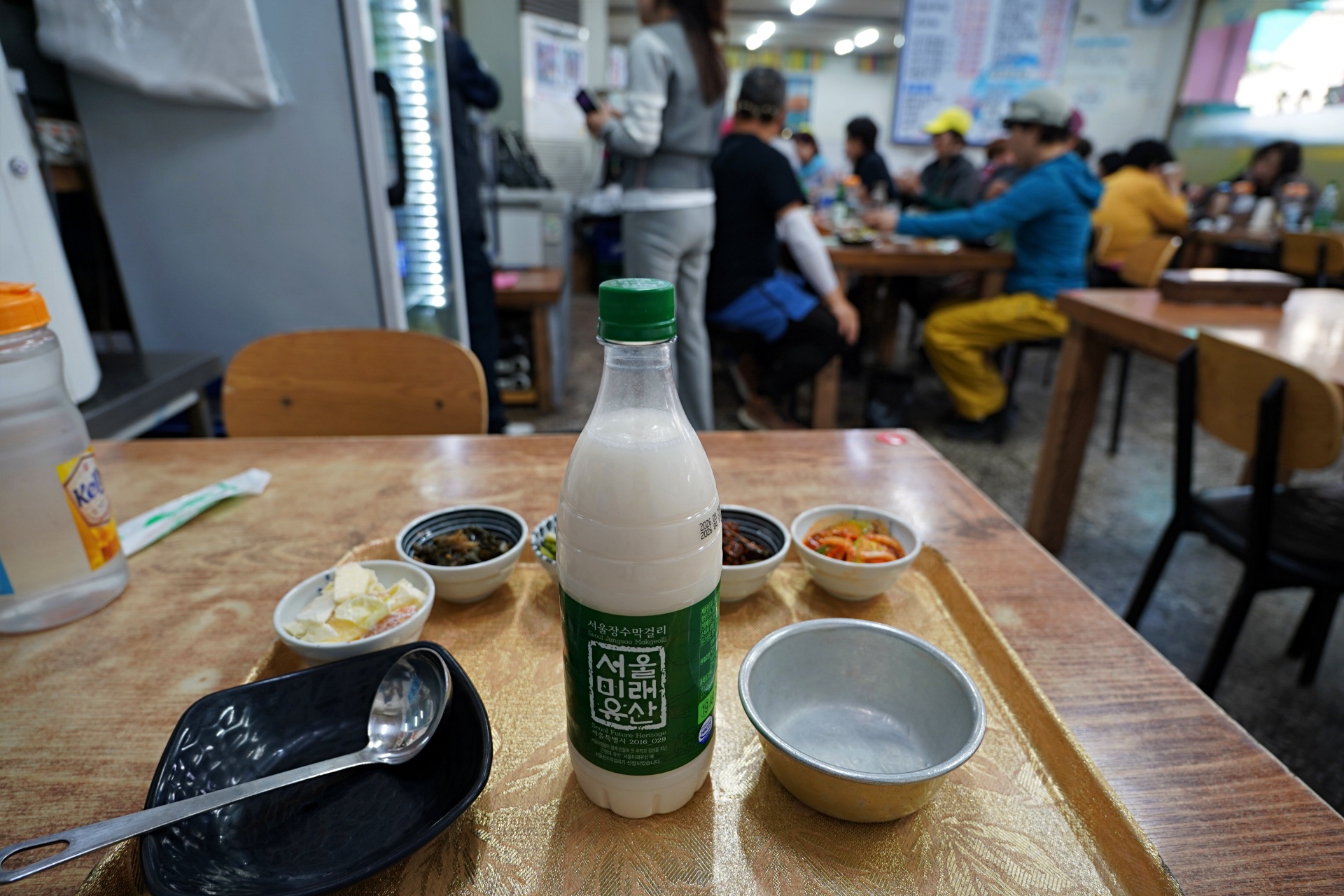 등산을 마치고 내려온 동호회 단체 손님들로 식당 안이 북새통이었다. 막걸리부터 가져다 달라고 하니 식사부터 빨리 주문하라고 재촉한다. 단체 손님의 술과 안주를 챙기느라 정신없을 텐데도, 구면이라고 11,000원짜리 굴국밥 한 그릇 주문한 나를 무시하지 않고 챙겨주는 주인의 마음씨가 고맙다.