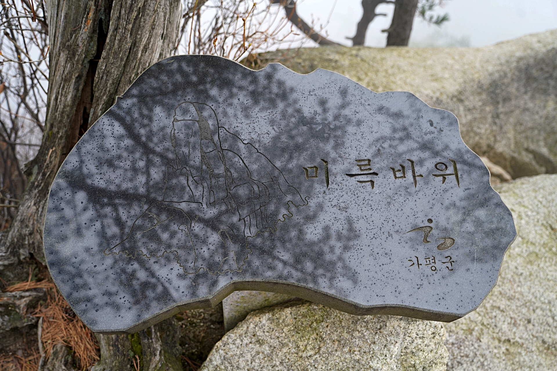 불교에 조예가 없어서 그런지 불교에서 사용하는 용어들은 일반적인 말과 상당한 차이가 있어 한 두 번 읽어보는 것으로는 이해가 잘 안가는 말이 많다. 부처상과 닮은 바위인데 안개로 전혀 볼 수 없었다.