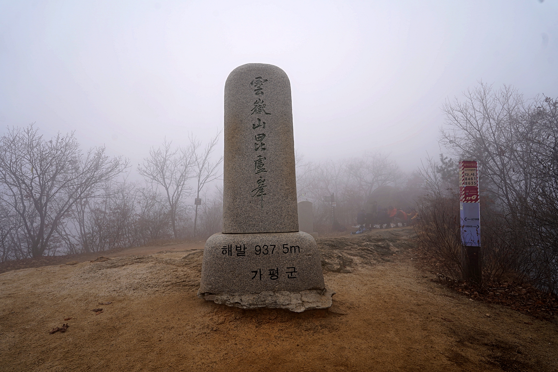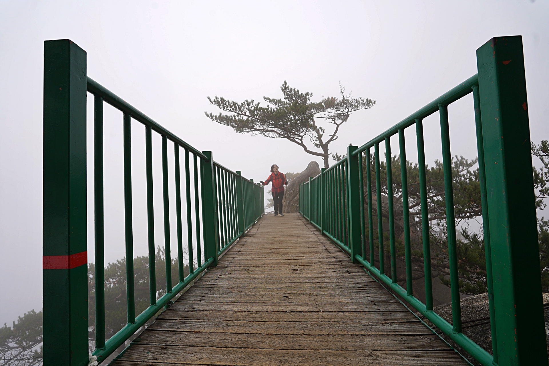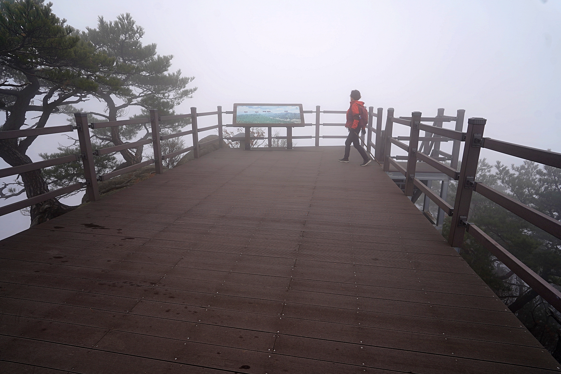 정상에 갈수록 안개가 너무 짙어서 아무것도 보이지 않았어요.