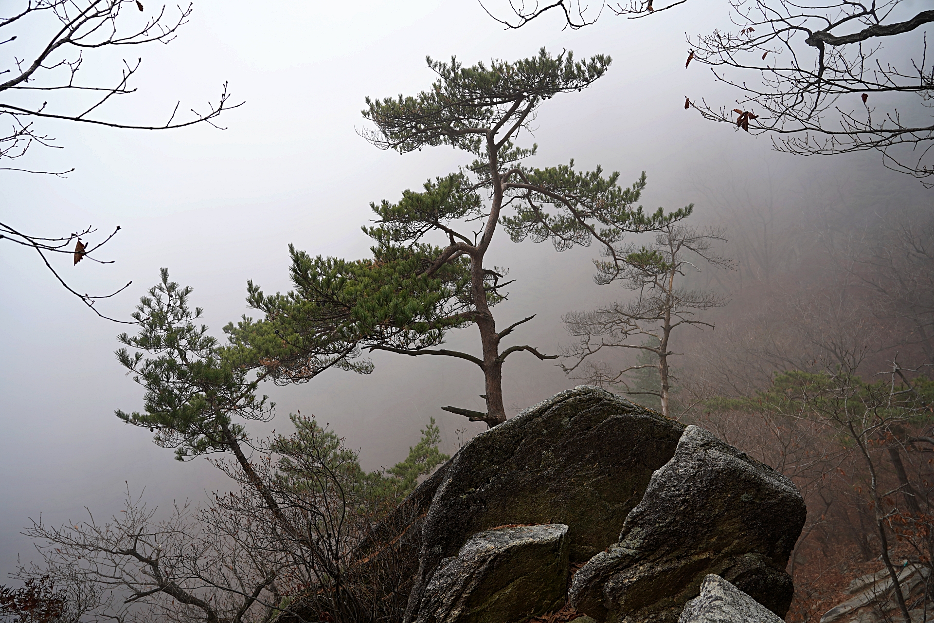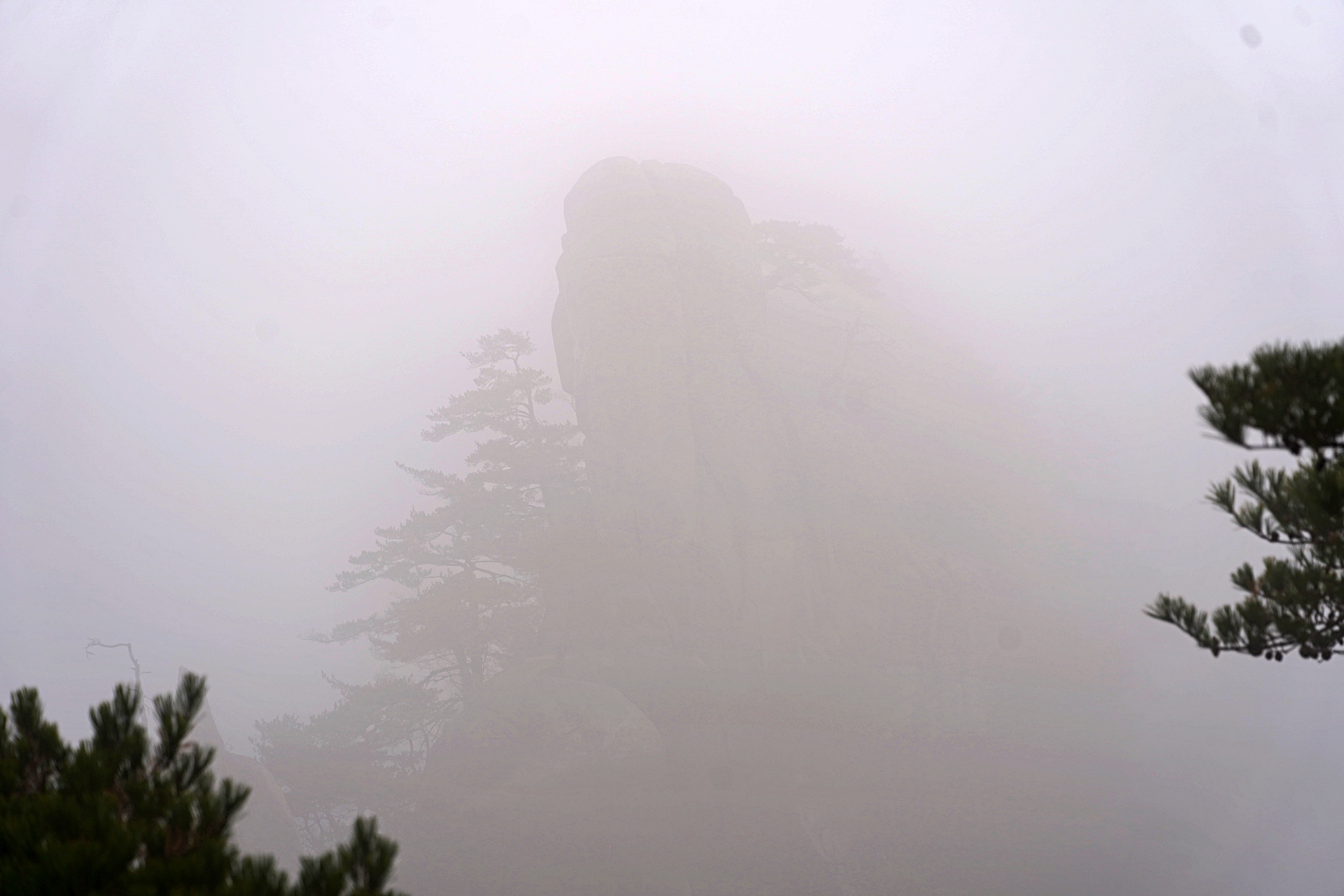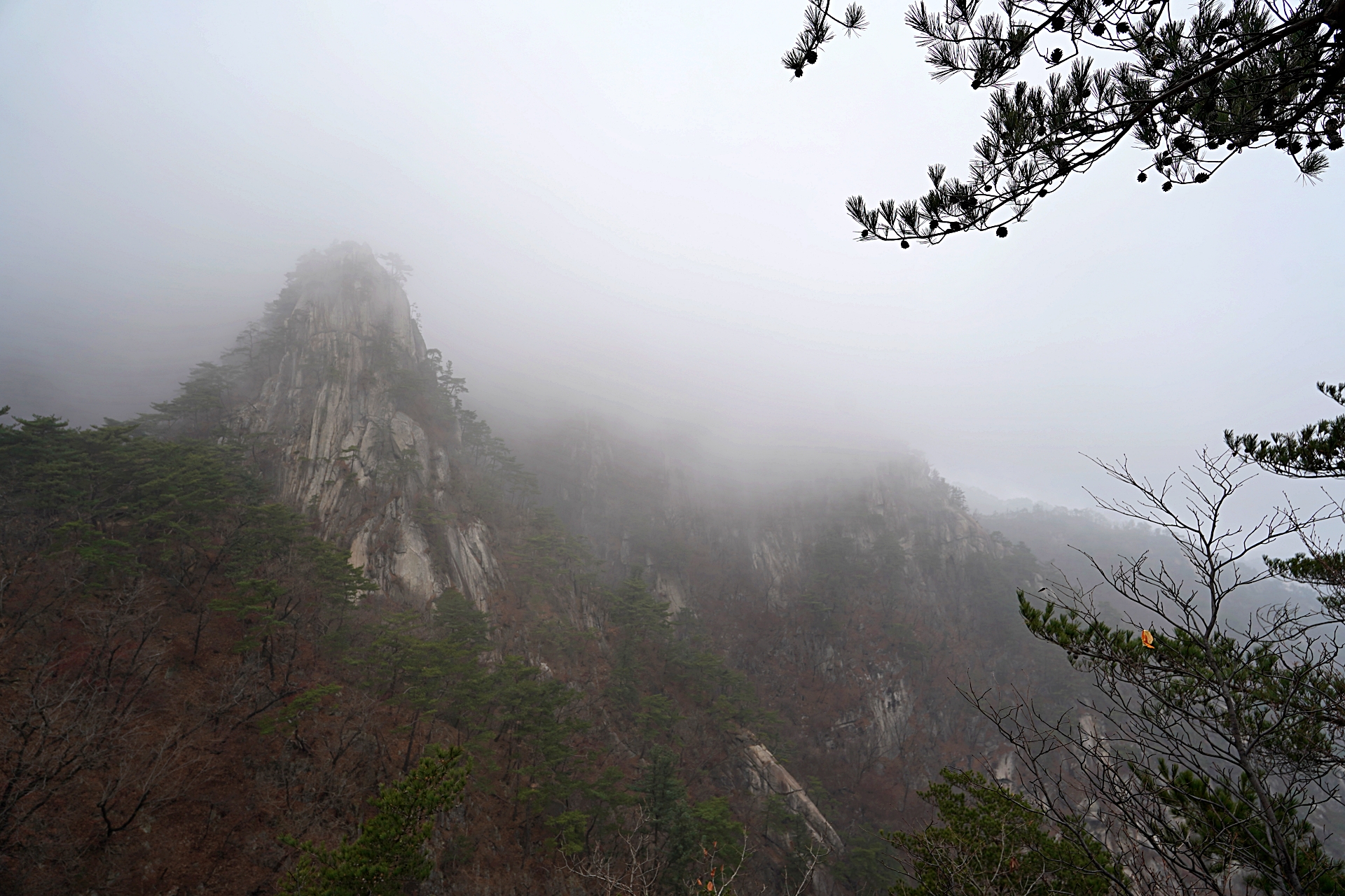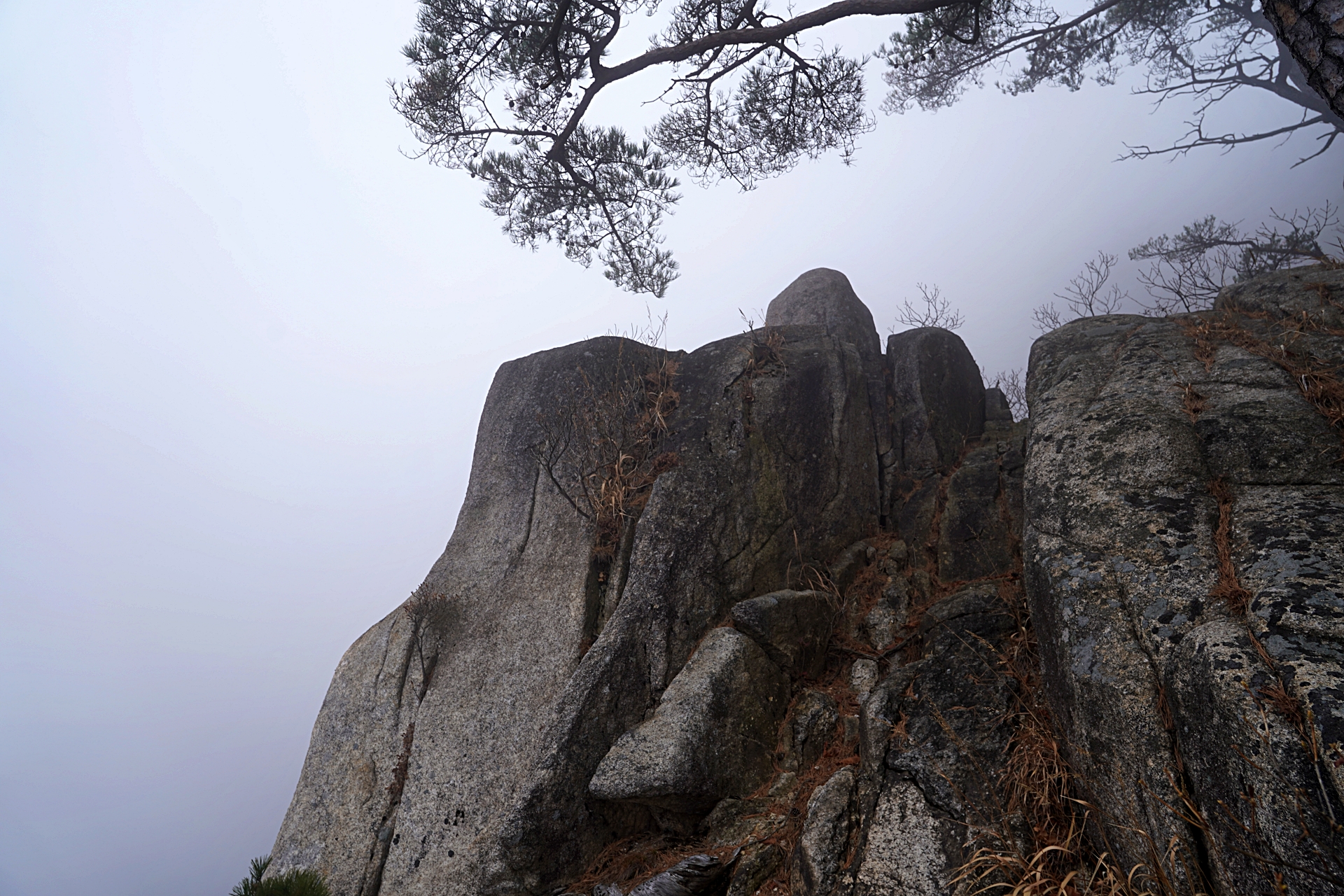 정상에 갈수록 안개가 너무 짙어서 아무것도 보이지 않았어요.