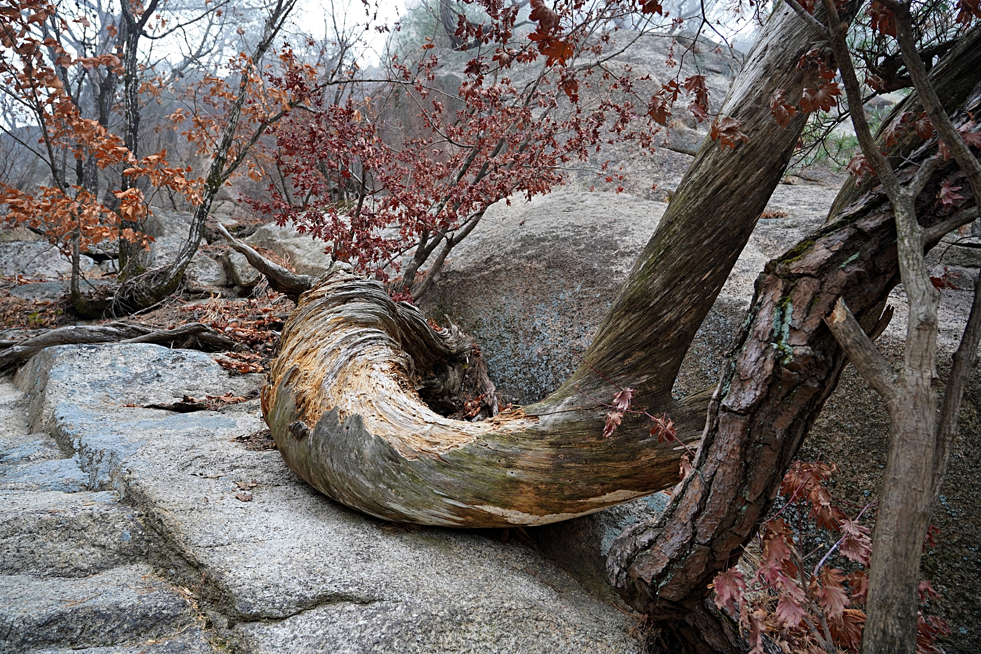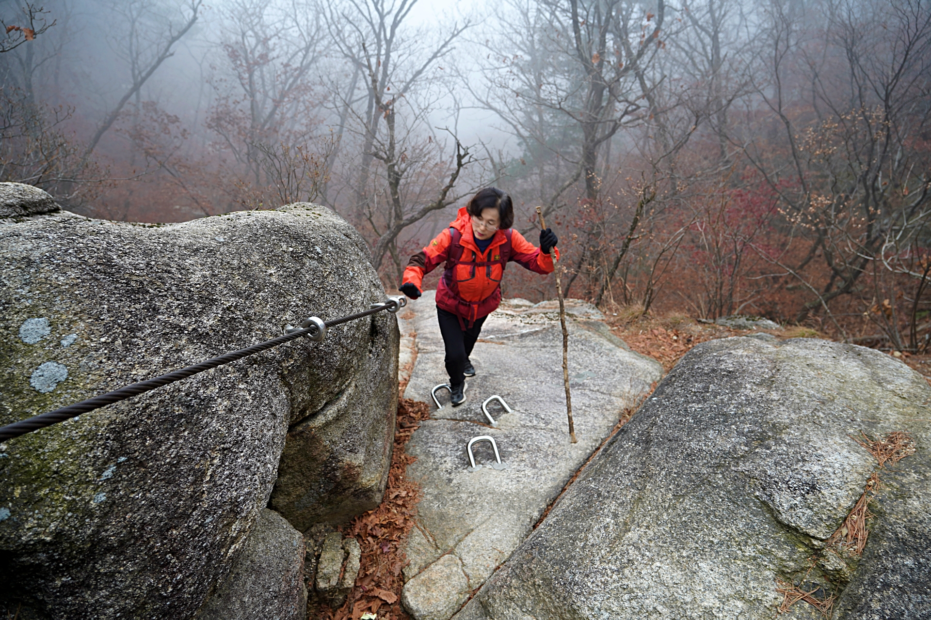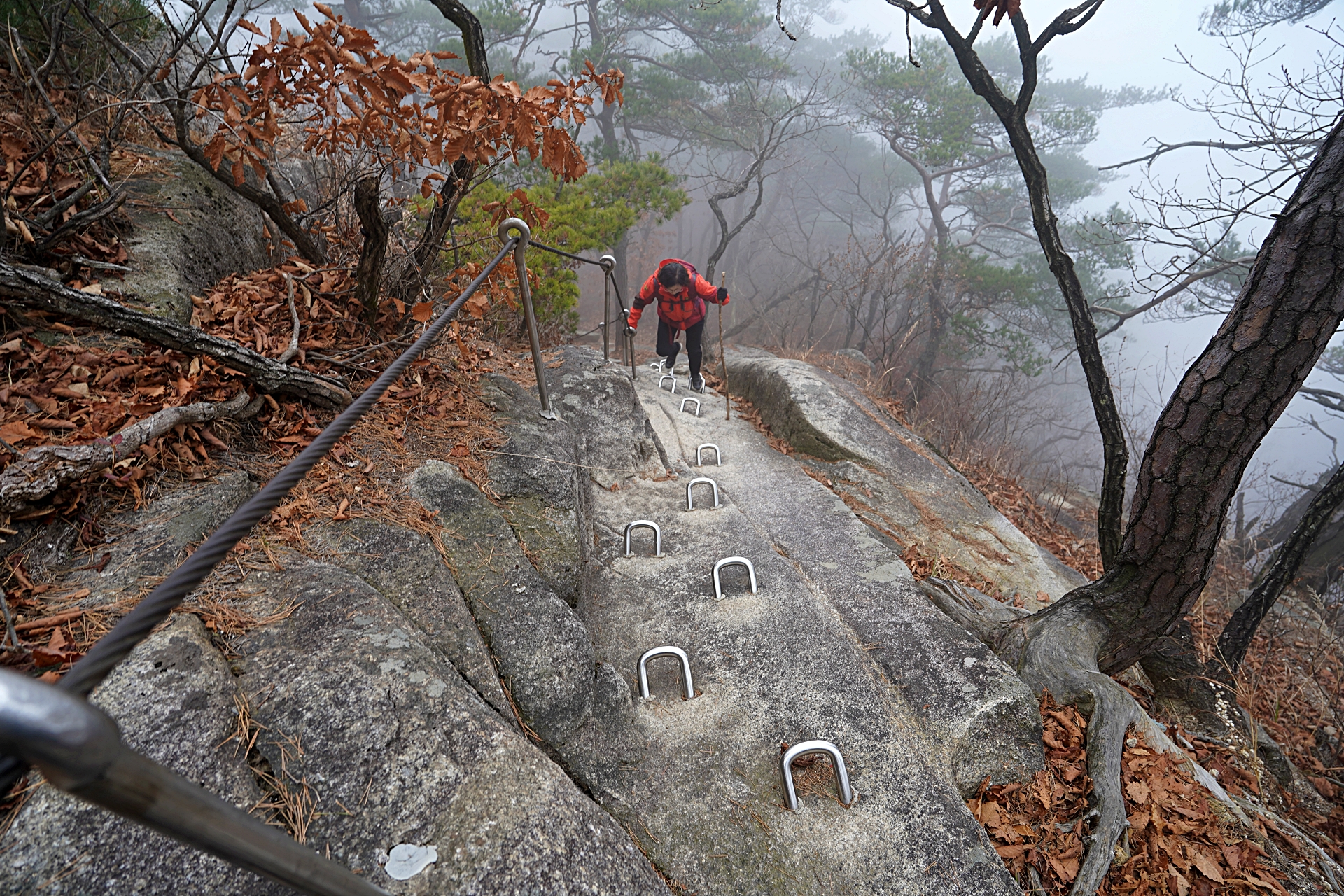 악산이라 그런가요. 가끔씩 사진 곳곳으로 보이는 등산하는 길이 여간 험해보이지 않네요. 날도 궂은데 두 분 무탈하게 잘 다녀오셔서 다행입니다! ^^