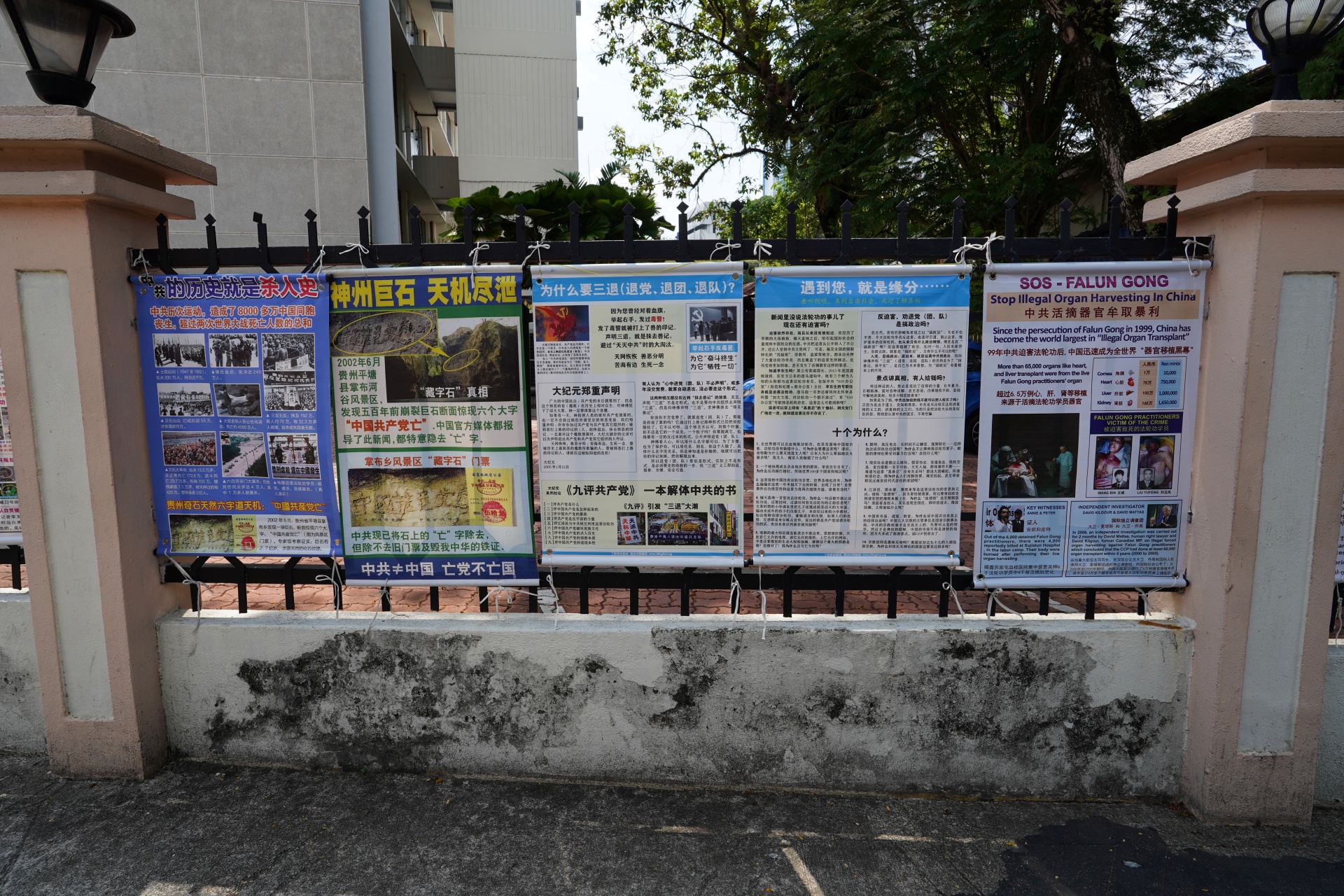 말레리지아 독립의 상징인 메르테카 광장으로 갔다. 가는 중에 제주 성산 일출봉에서 본 중국을 비난하는 대자보가 붙어 있었다. 중국 공산당이 신장 위구르에서 행한 만행이나 파룬궁 신자들의 장기적출 등, 입에도 올리기 끔찍한 악행에 대해 적혀 있는 듯 보였다.