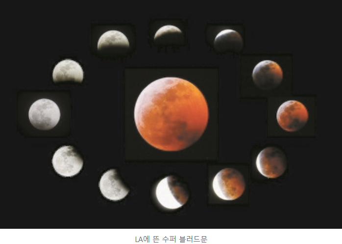 위 사진은 LA에서 바라본 보름달의 개기월식 과정 모습!